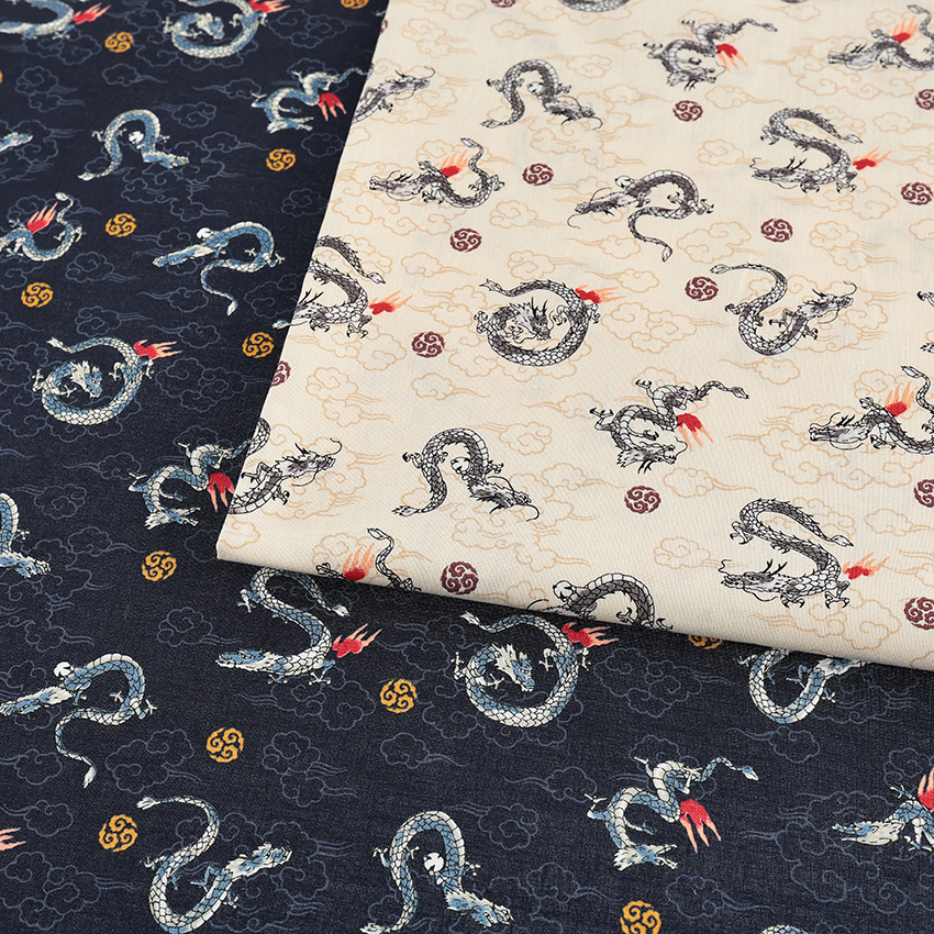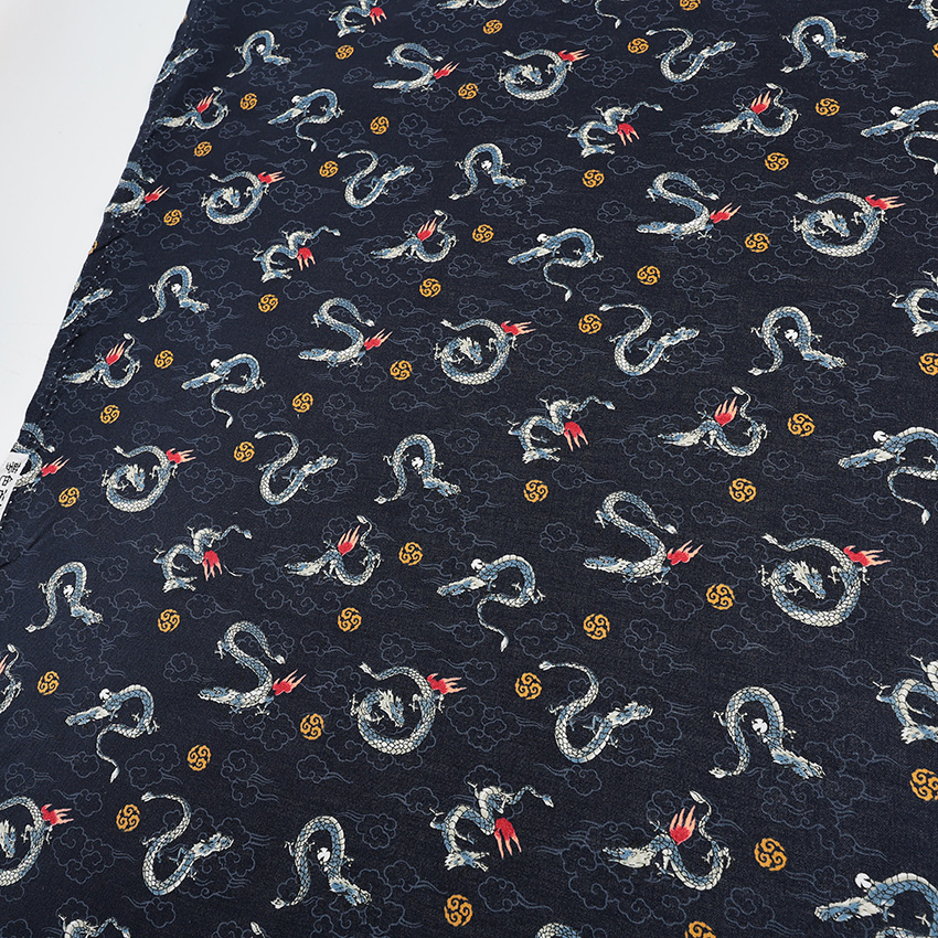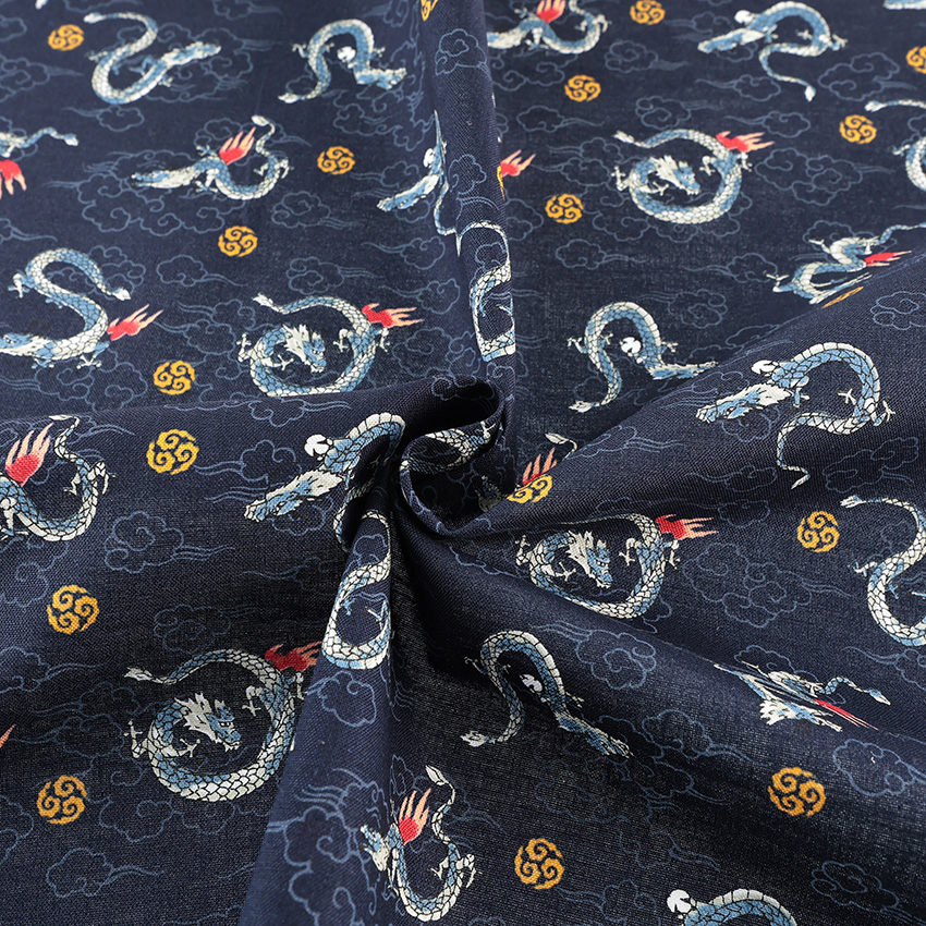 龍 小柄 シーチング 50cm単位|切売り 切り売り 生地 布 布地 お祭り 甚平 クール かっこいい 和調 和柄 和風 縁起物 動物柄 コットン100%
