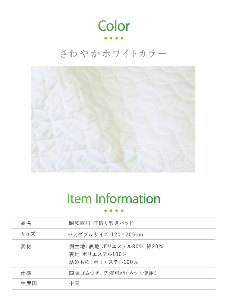 【最安値に挑戦!!】昭和西川/汗取り敷パッド/セミダブルサイズ/敷きパッド/綿/シーツ/ベッドパッド/ベッドにも装着可能