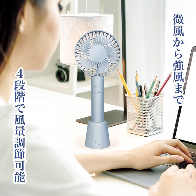 回転スタンド付きハンディファン ブルー 卓上扇風機 携帯扇風機 小型 ミニ おしゃれ ハンディー扇風機 ハンド扇風機 熱中対策 熱射 冷却 ひんやり アウトドア