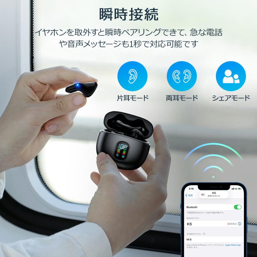 「クーポンで1980円」ワイヤレスイヤホン bluetooth 5.3 イヤホン 爆買 軽量 IPX7防水 iphone HiFi高音質 25時間連続 ゲームモード 自動ペアリング