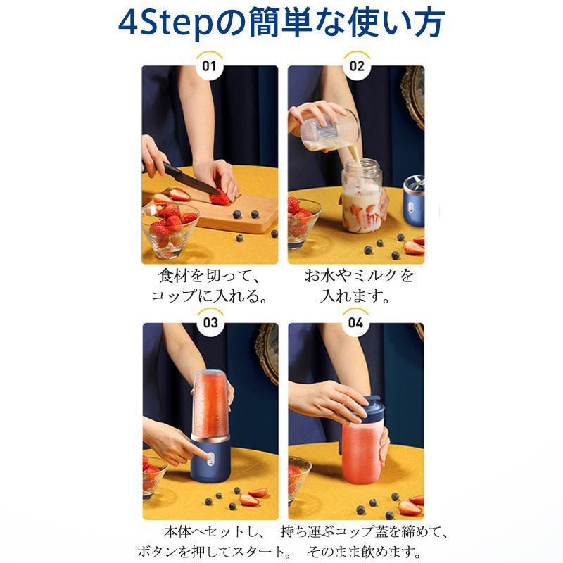 ミキサー ジューサー 丸洗い可 携帯ジューサー ハンドミキサー 小型 洗いやすい USB充電式 持ち運び便利 氷も砕ける ブレンダー スムージー