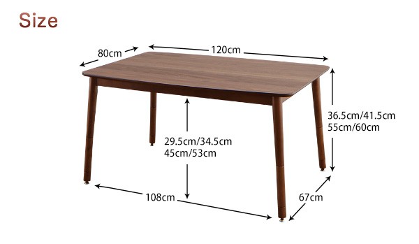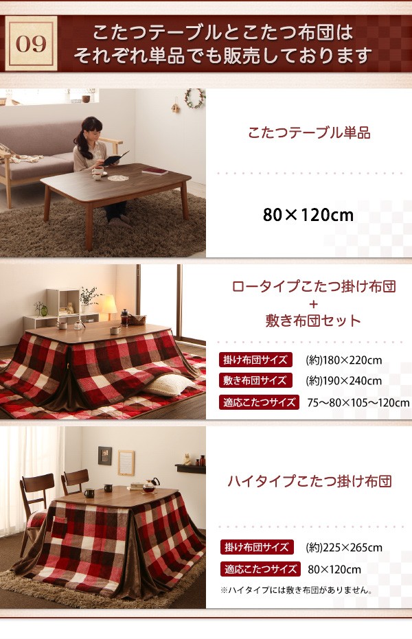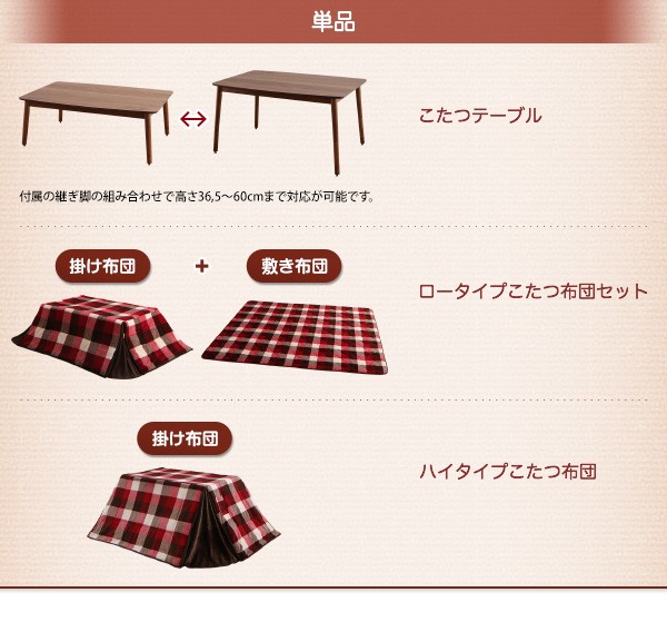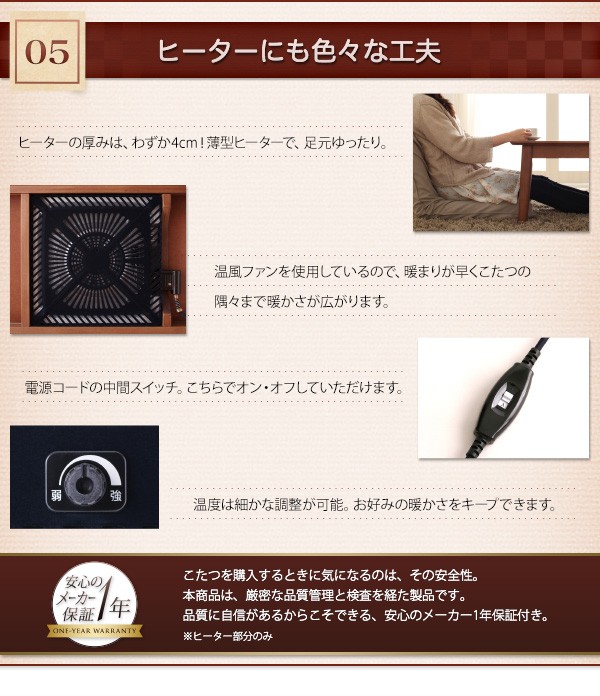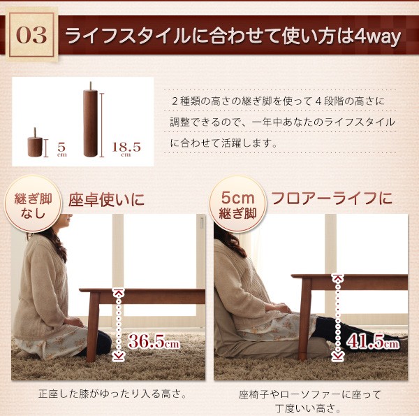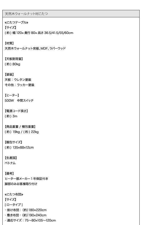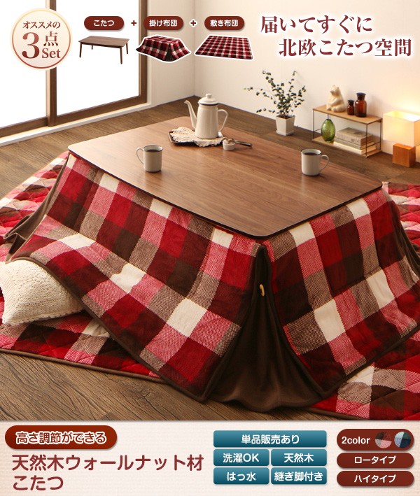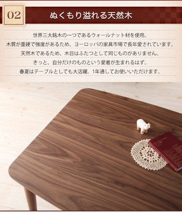 ウォールナット こたつテーブル 4尺長方形(80×120cm) 高さ調整ができる 天然木ウォールナット材こたつ Nolan FK ノーラン エフケー