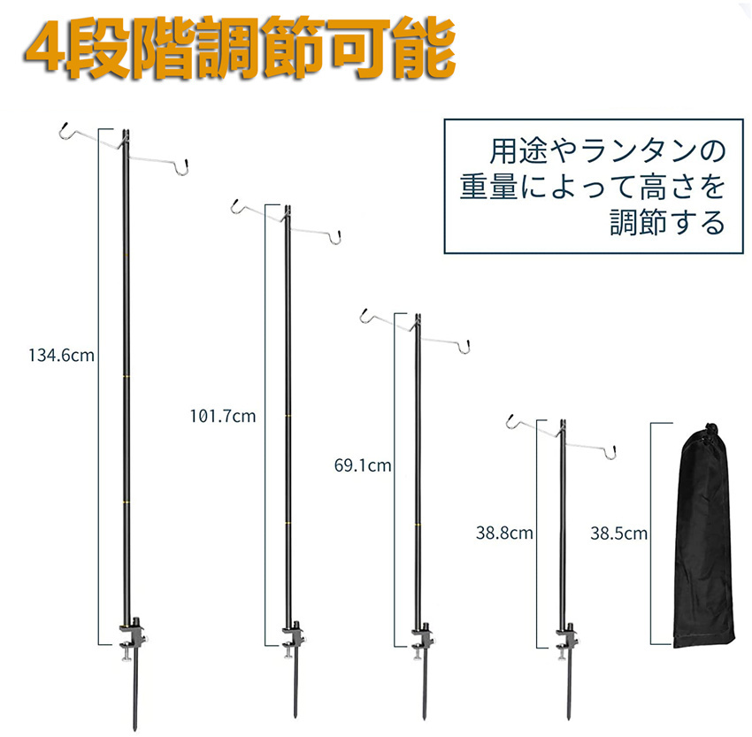 ランタンスタンド おしゃれ 卓上 2WAY マルチツールスタンド コンパクト 軽量 折りたたみ式 アウトドア 収納袋付き キャンプ用品 ランタンハンガーダブル