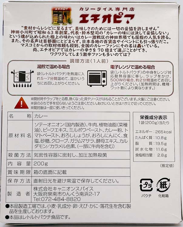 ●全国屈指の人気カレー店「エチオピア」の味を忠実に再現したビーフカレーです