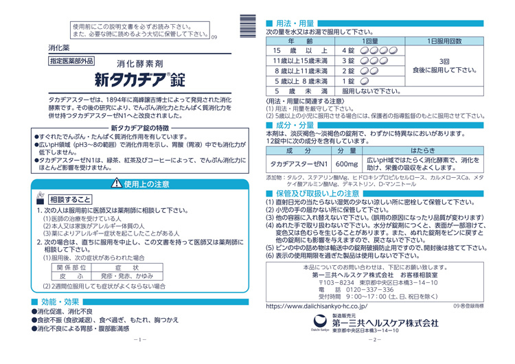 新タカヂア錠に関する詳細なお問合せは下記までお願いします