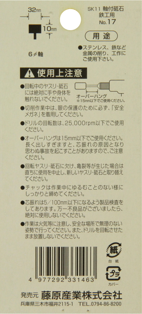 【SK11 軸付砥石 鉄工用 No.17の商品詳細】