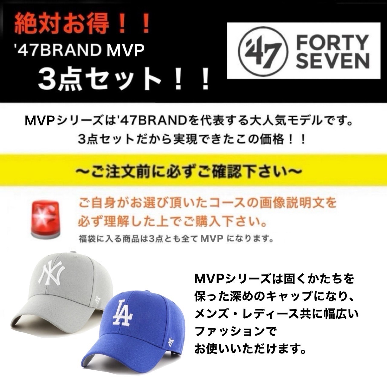 47 47ブランド キャップ 帽子 3点セット MVP キャップ 福袋 選べる お楽しみ袋 3点組 3点セット ベースボールキャップ 野球帽 ユニセックス '47BRAND MVP CAP