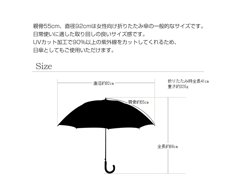 タイプ:晴雨兼用・8本骨・手開き・UVカット加工・オリジナル化粧箱入り