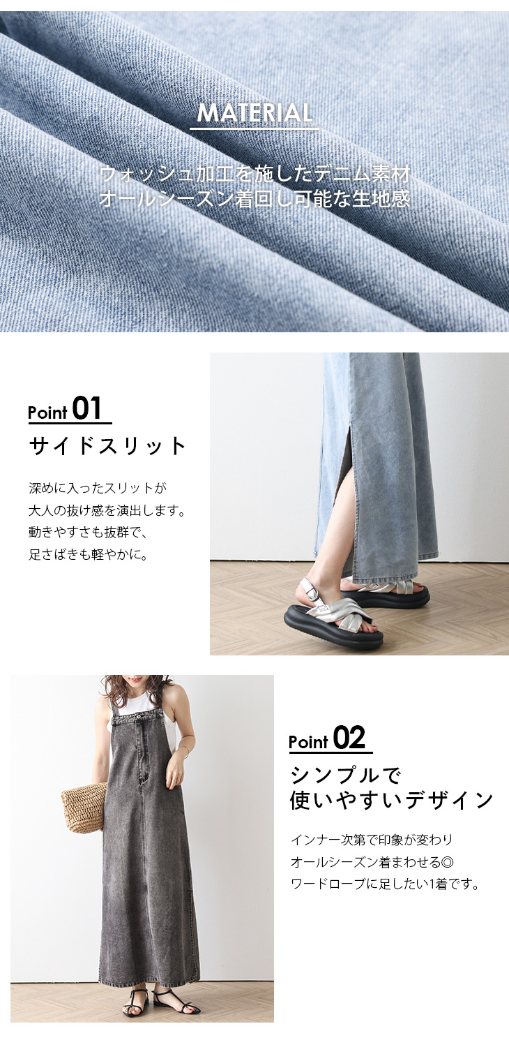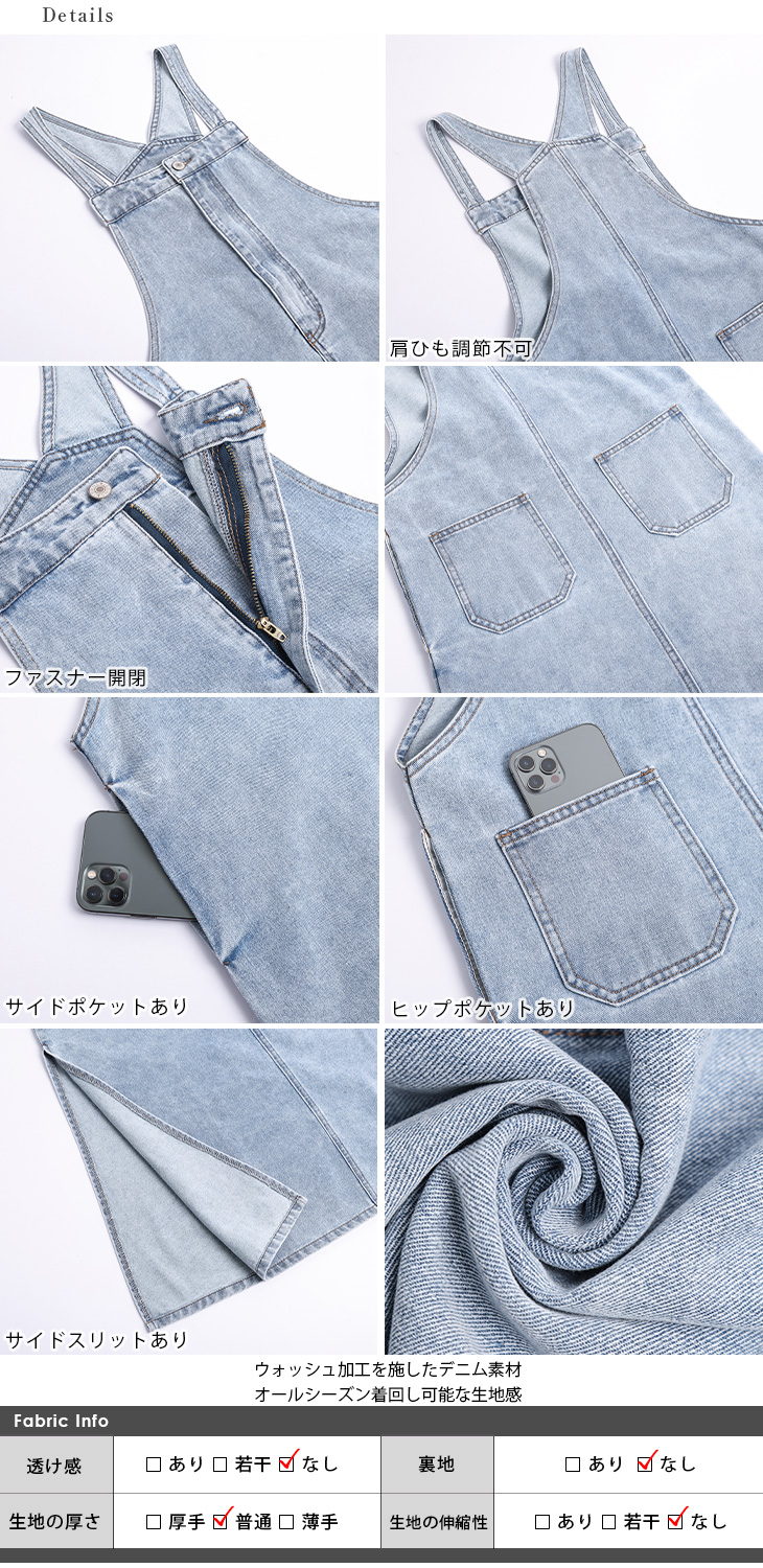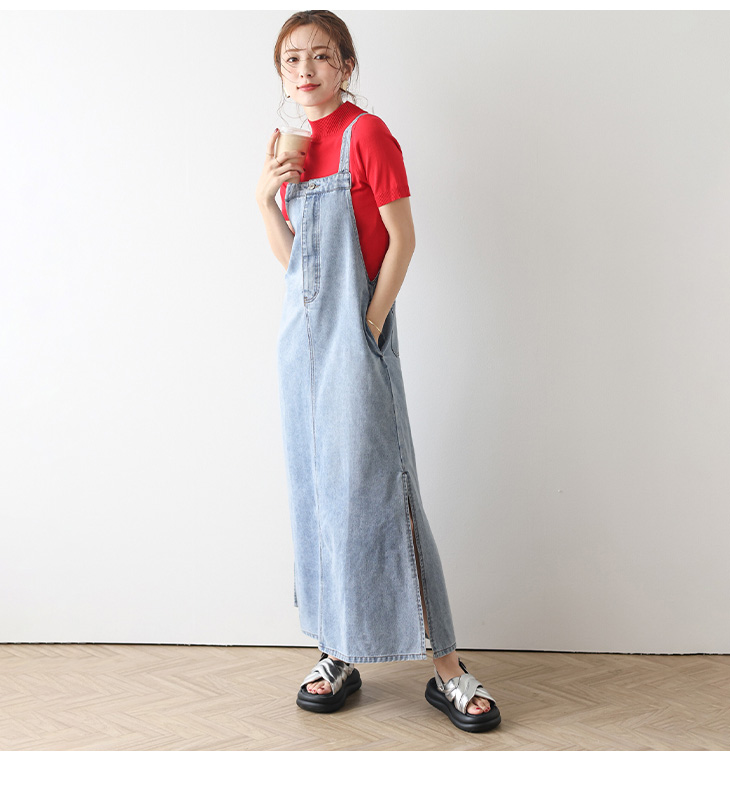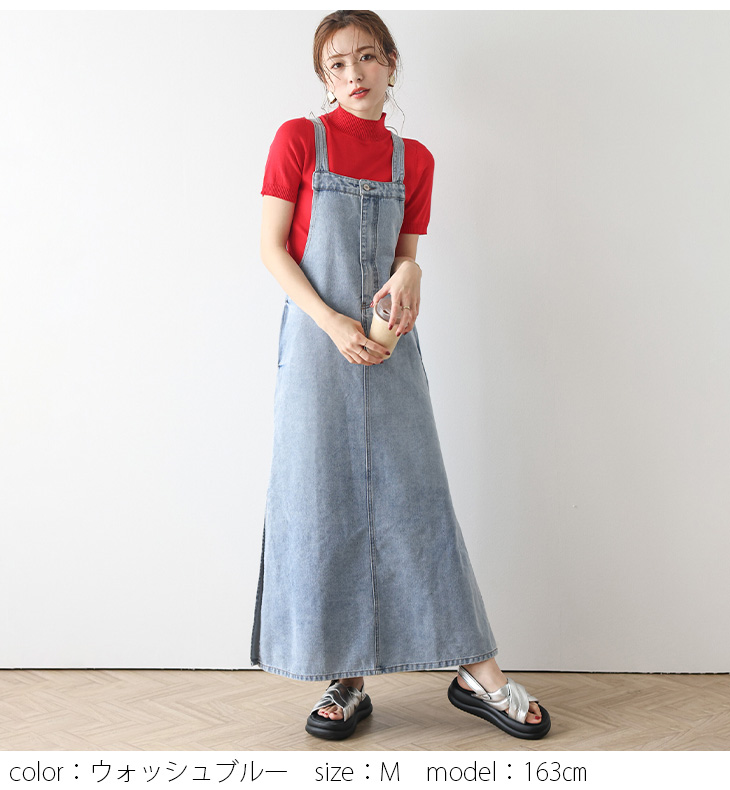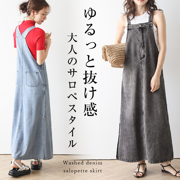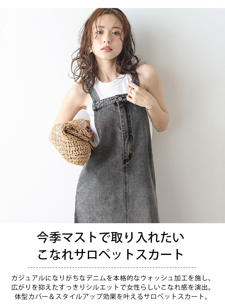 ウォッシュデニム サロペット スカート ジャンパースカート【asrss24-411】【即納:1-5営業日】【送料無料】メ込2