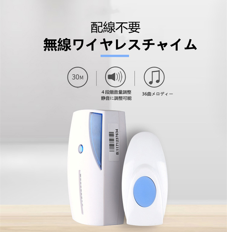 ワイヤレスチャイム 呼び出しチャイムセット ワイヤレスベル ドアベル インターホン 呼び鈴 40Mの無線範囲 送信機老人呼び出し 介護用品「敬老の日」