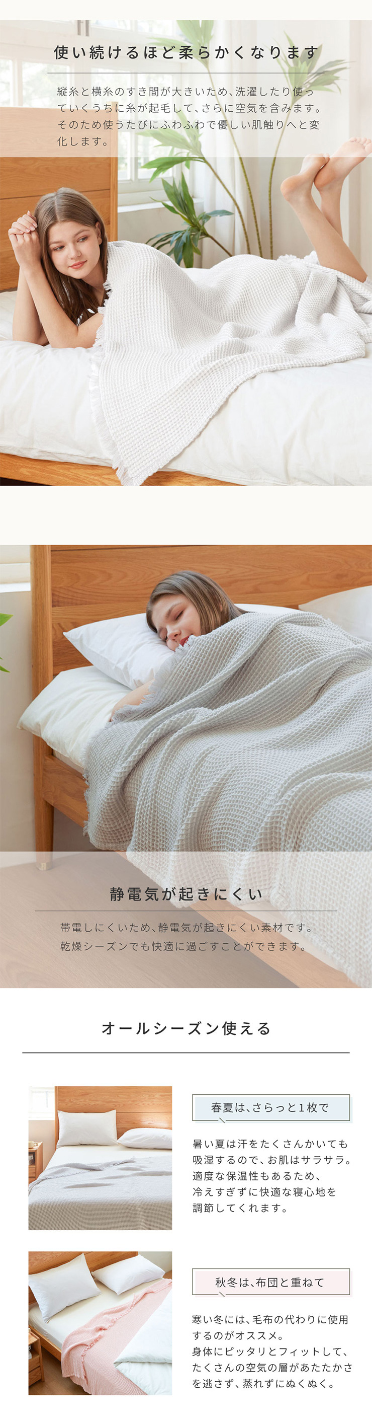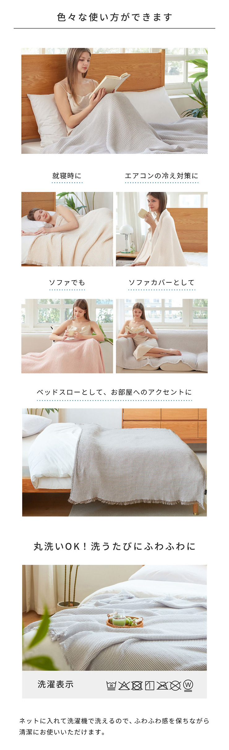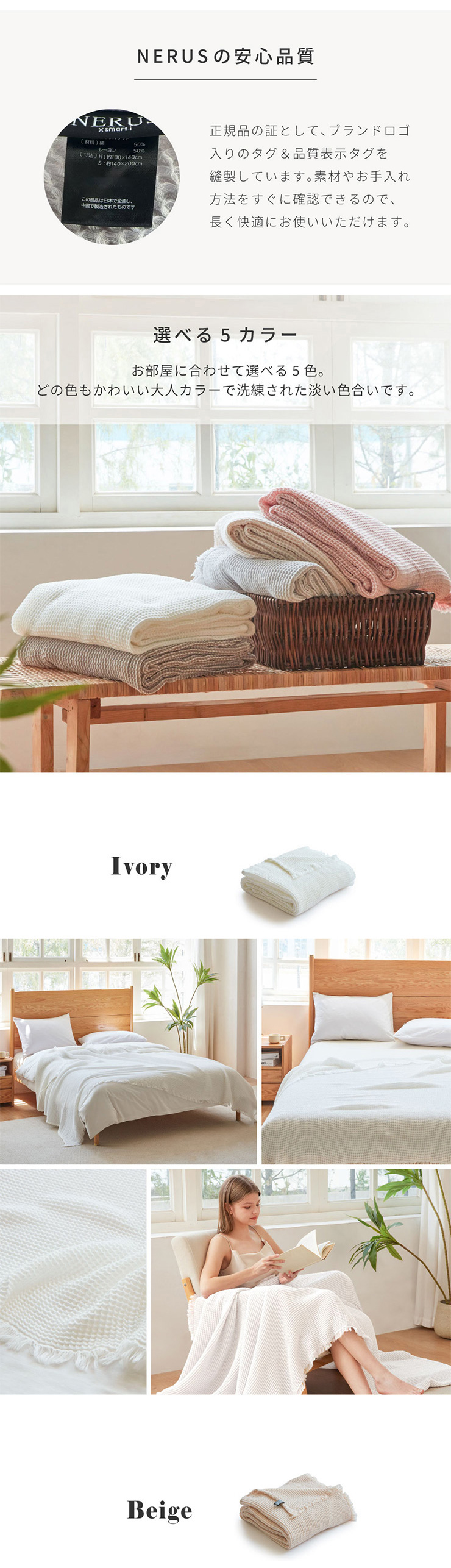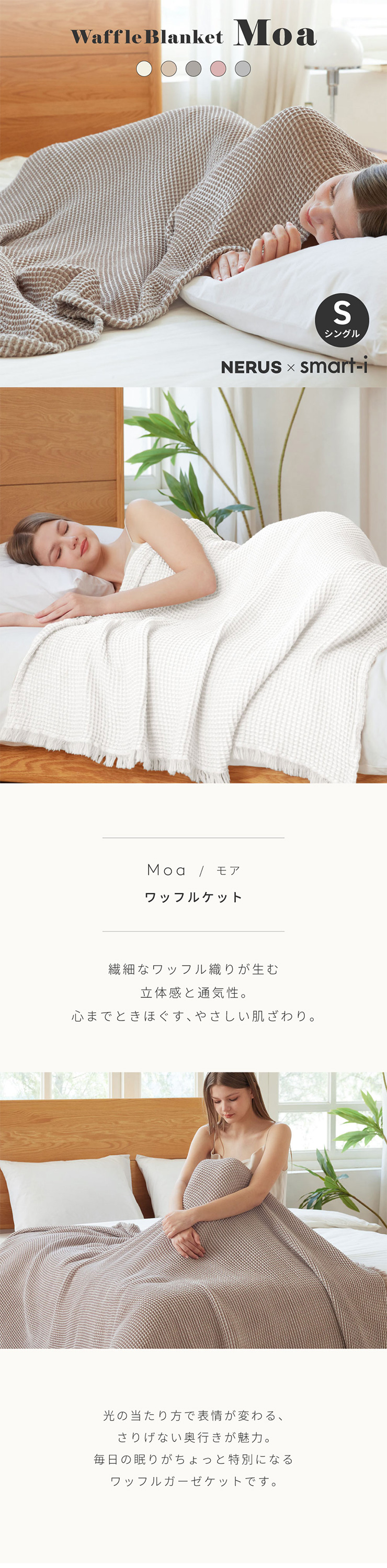 寝具 タオルケット シングル おしゃれ ガーゼケット 140x200cm 洗える ブランケット ワッフルケットMoa(モア) 5色対応 NERUS 正規品 ネルス