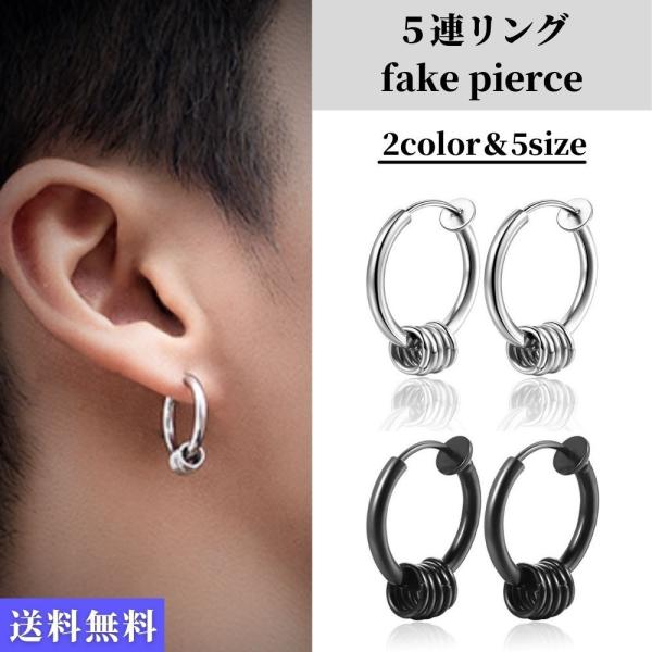 フェイクピアス ノンホールピアス イヤリング 両耳用 セット メンズ レディース 5連リング フープ 韓国 bts