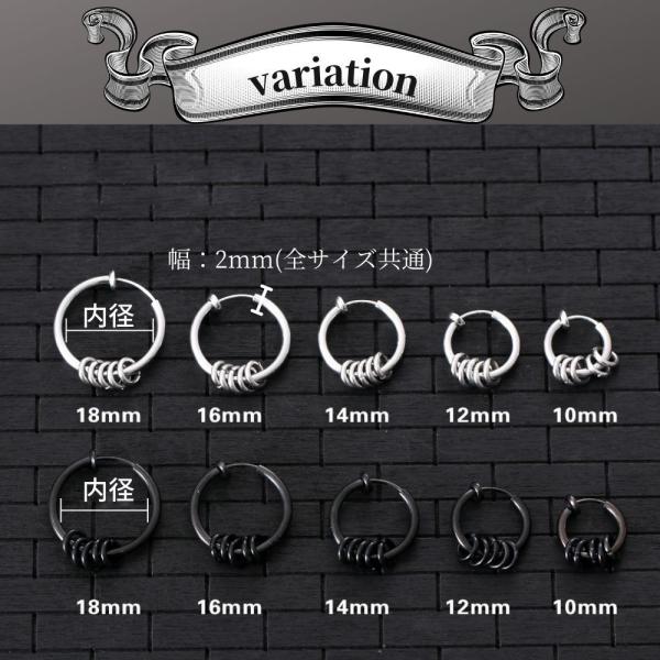 幅:2mm、内径10/12/14/16/18mm(外径:14/16/18/20/22mm)。カラーはシルバー、ブラックの2色でお選びいただけます。お好きな位置にご使用できるので、複数サイズを合わせ付けするのもおすすめです。