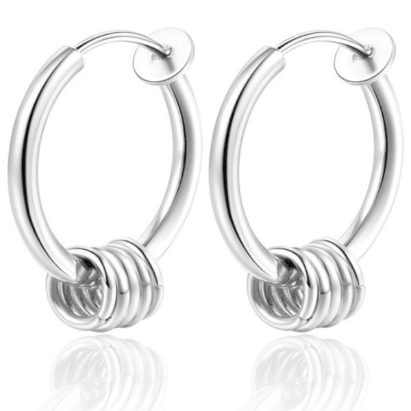 耳にピアス穴が開いていなくても装着可能な、リング型のフェイクピアスです。ピアスの内側にバネを埋め込むことにより小さな力で簡単に装着でき、耳たぶ以外にも軟骨部分などお好きな位置にご使用いただけます