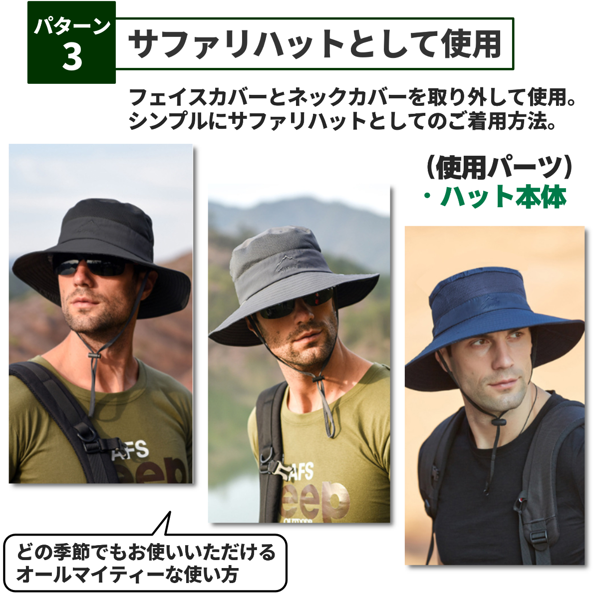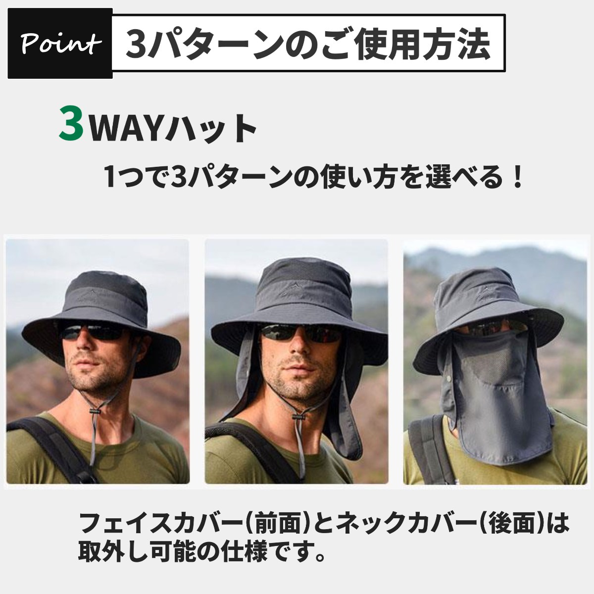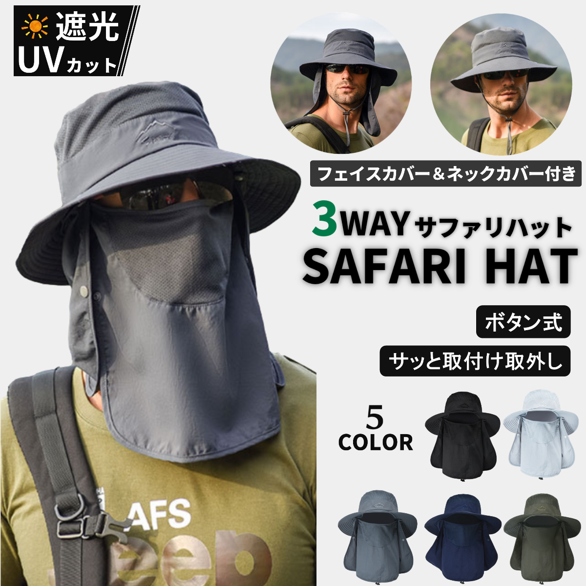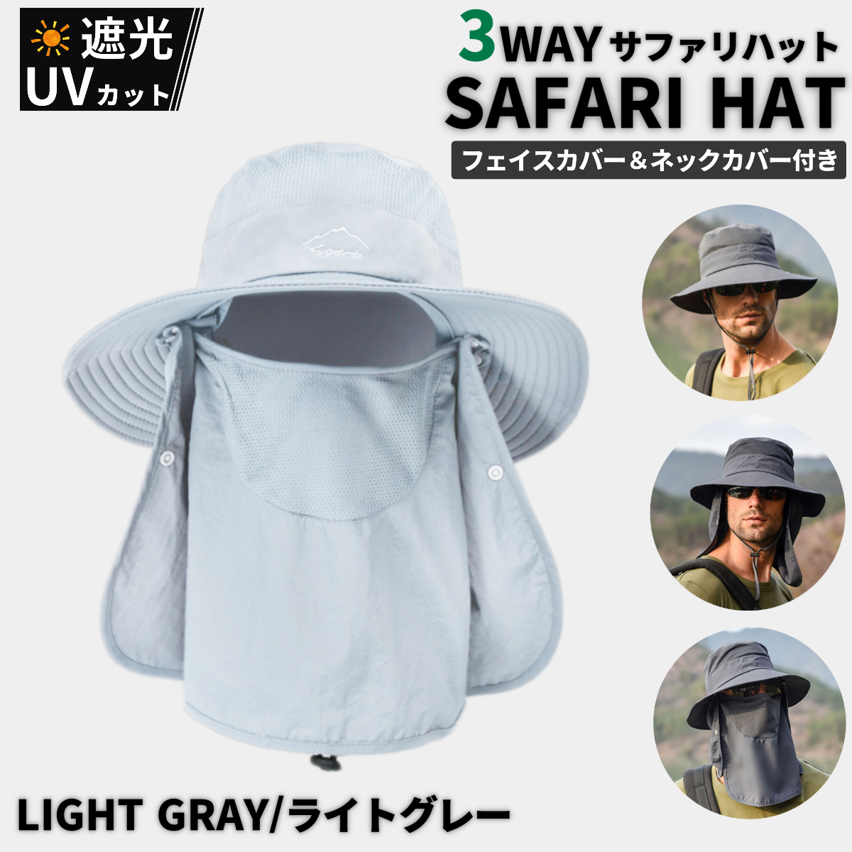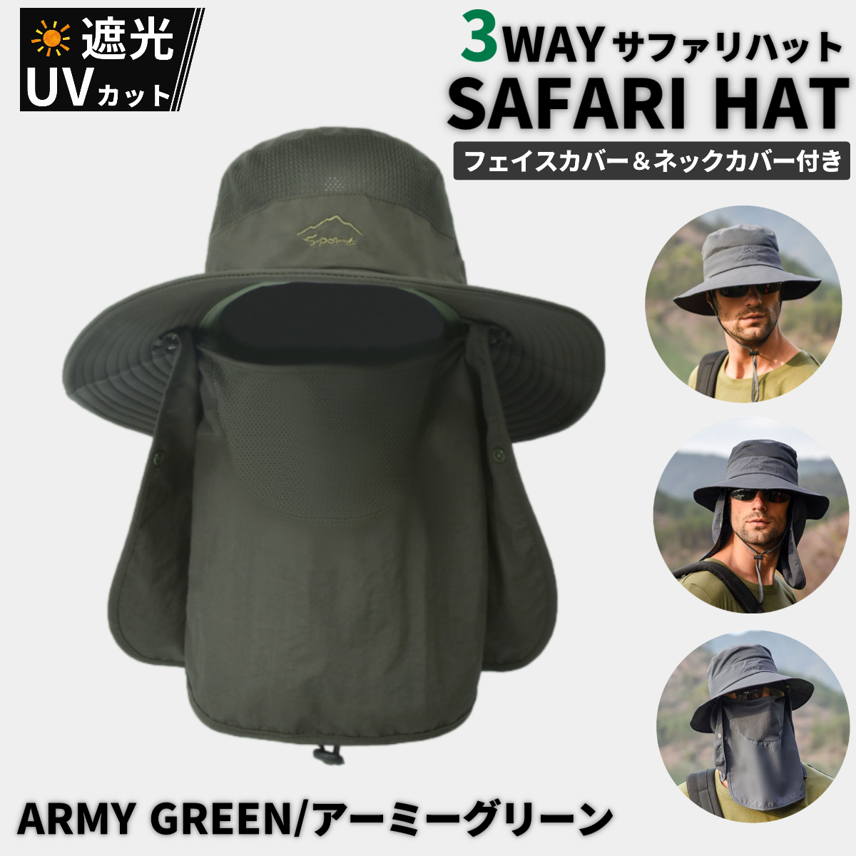 送料無料 3WAY 日焼け防止の帽子 サファリハット フェイスカバー