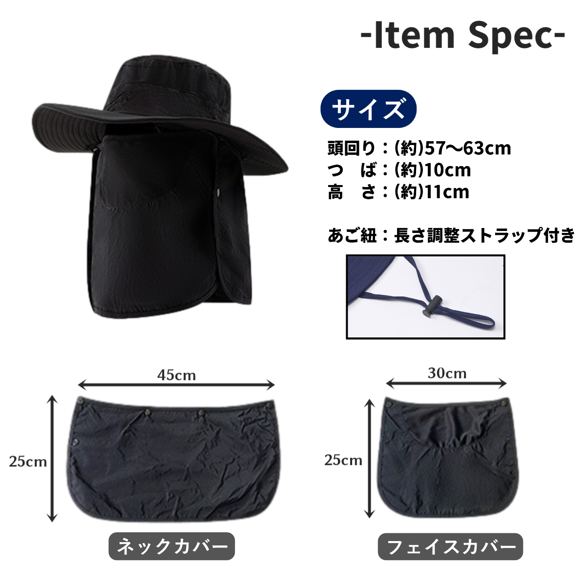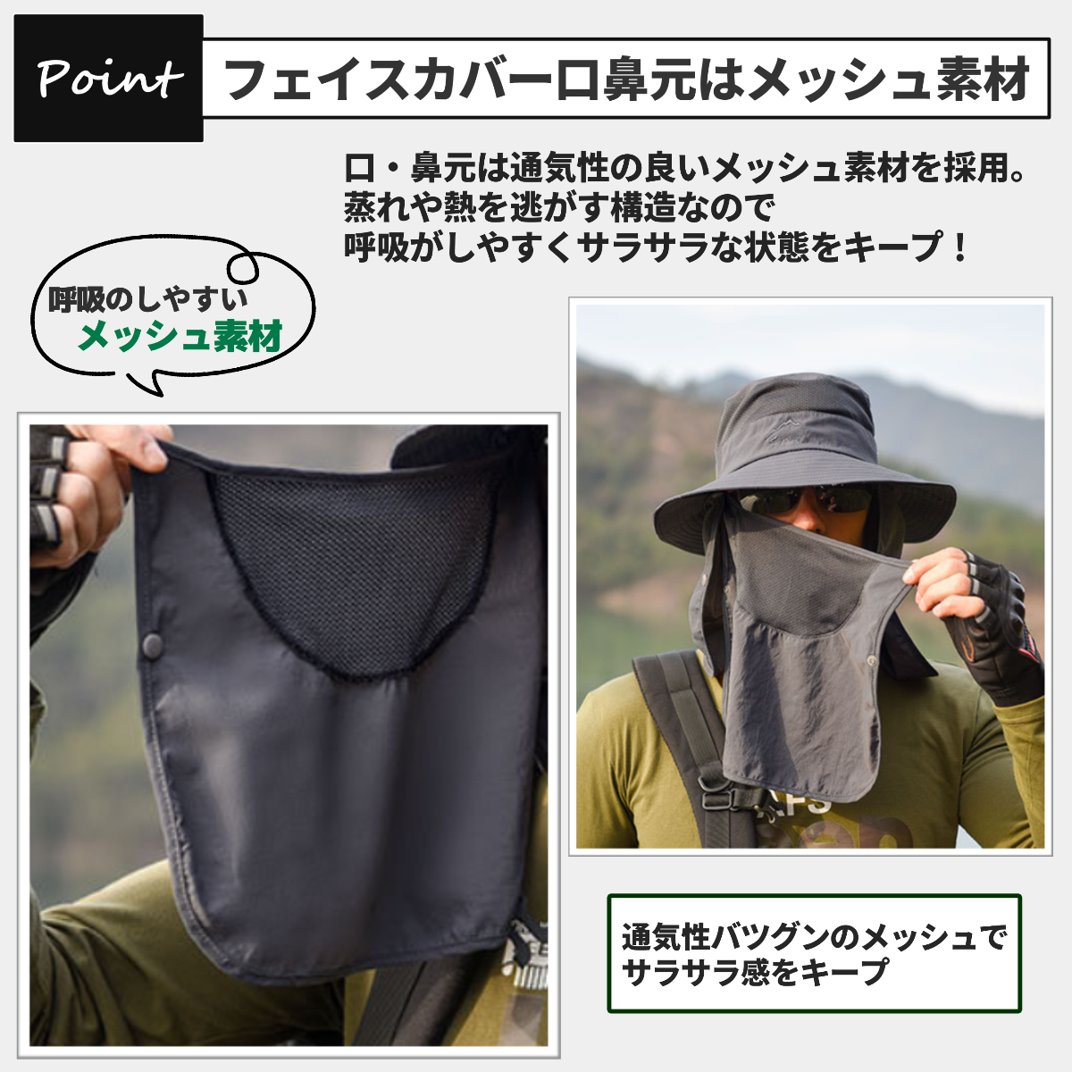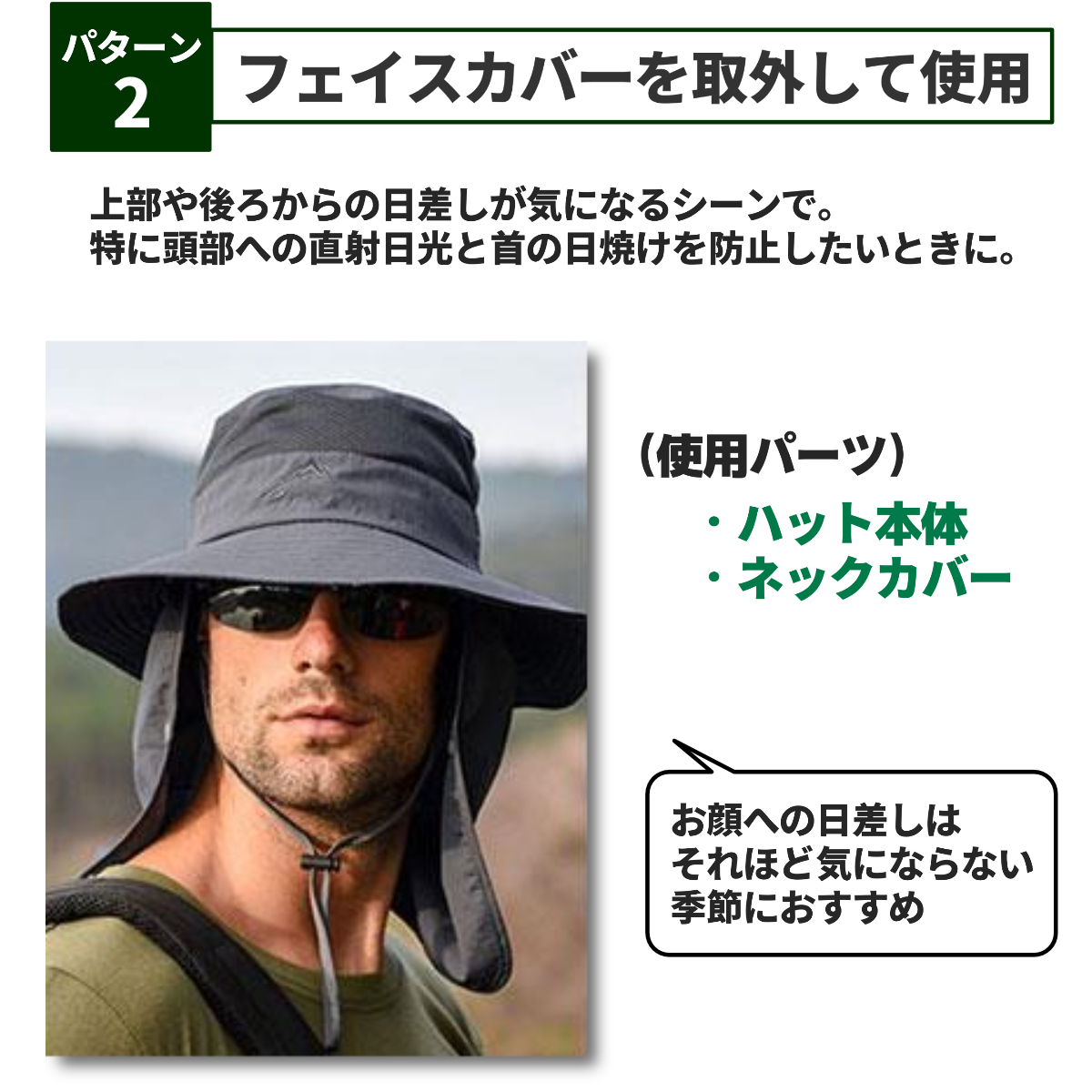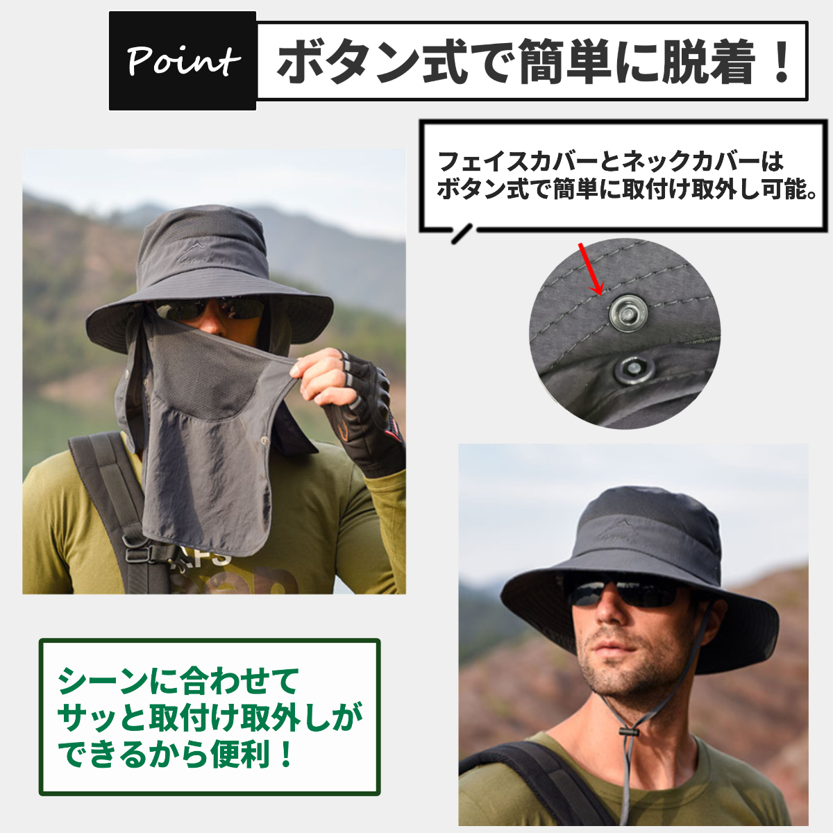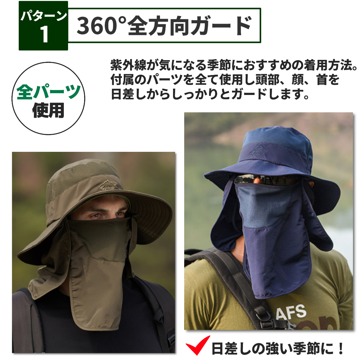 送料無料 3WAY 日焼け防止の帽子 サファリハット フェイスカバー