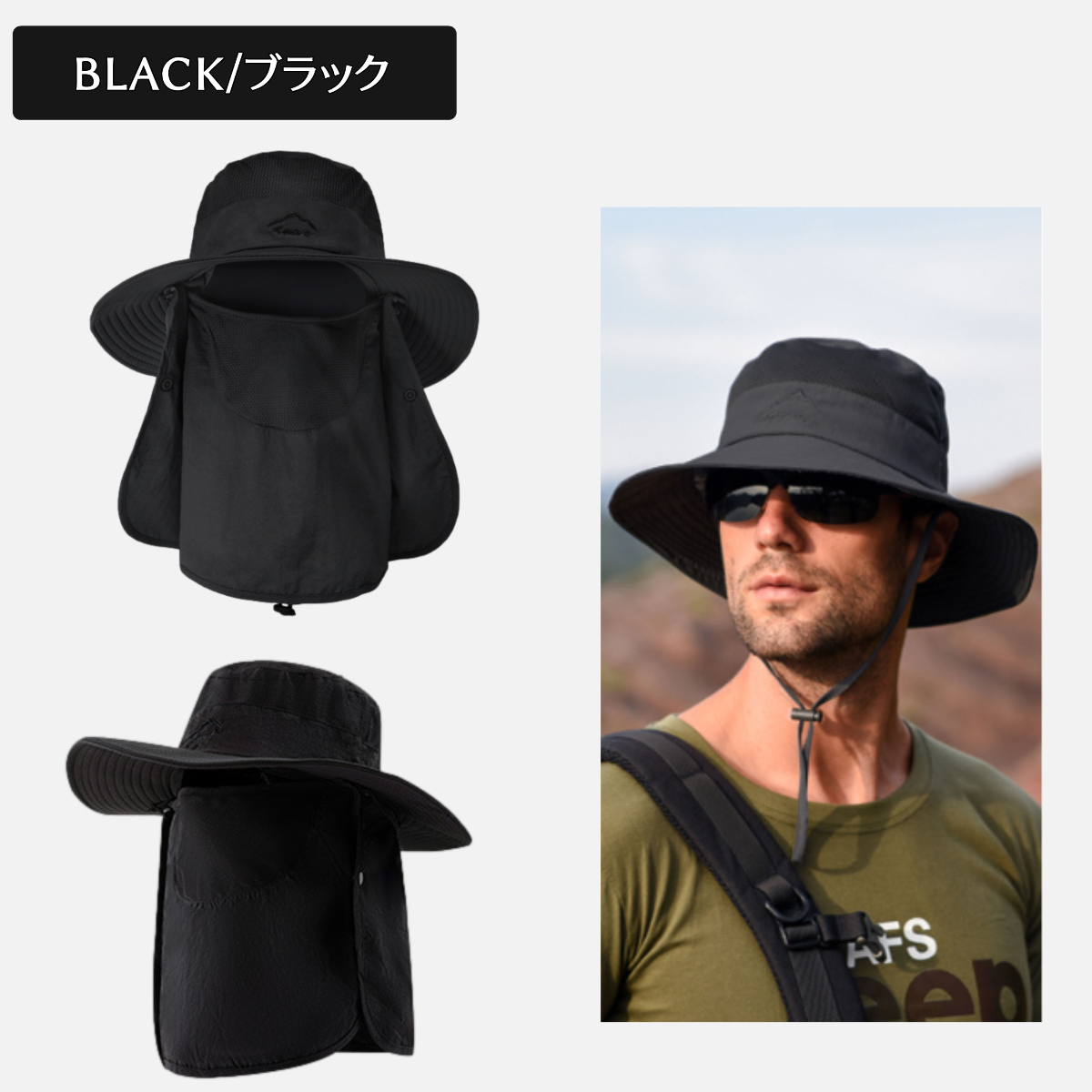帽子 日焼け防止 日よけ メンズ 首 紫外線 UVカット 日除け おしゃれ サファリハット つば広帽子 ハット 3WAY キャップ 日よけ帽子 夏 UV 冬 アウトドア