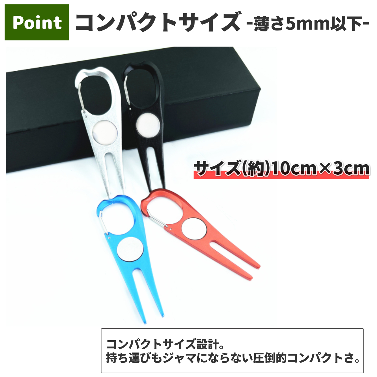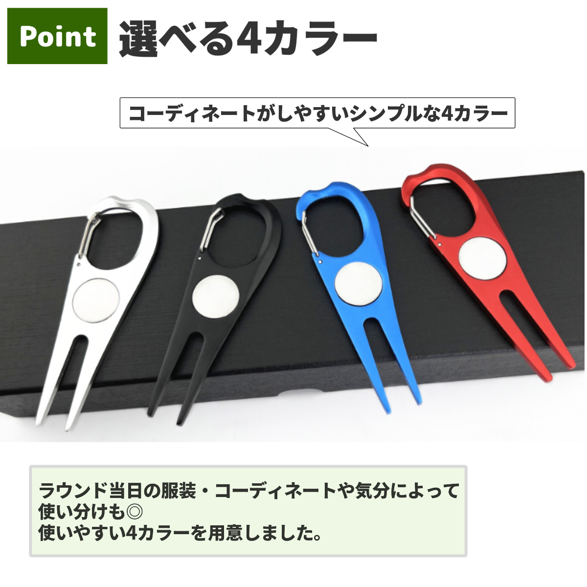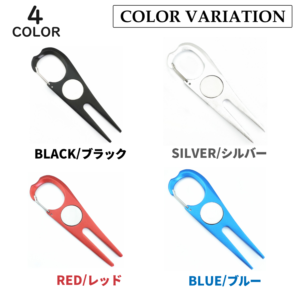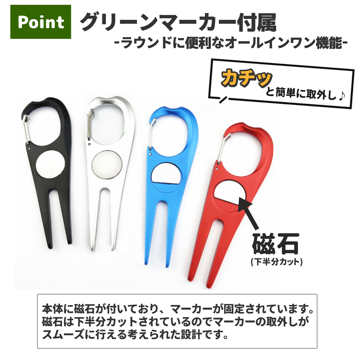 グリーンフォーク ゴルフ マーカー カラビナ シンプル かっこいい ラウンド用品 リペアツール ピッチマーク コンペ おしゃれ ディボット ツール 景品 記念品