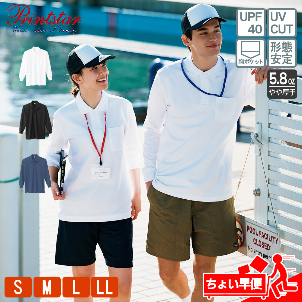 ポロシャツ 長袖 メンズ レディース ポケット付 無地 5.8オンス プリントスター Printstar 00169-VLP スポーツ ゴルフ ビジネス 事務服 作業着 制服 白 黒 紺