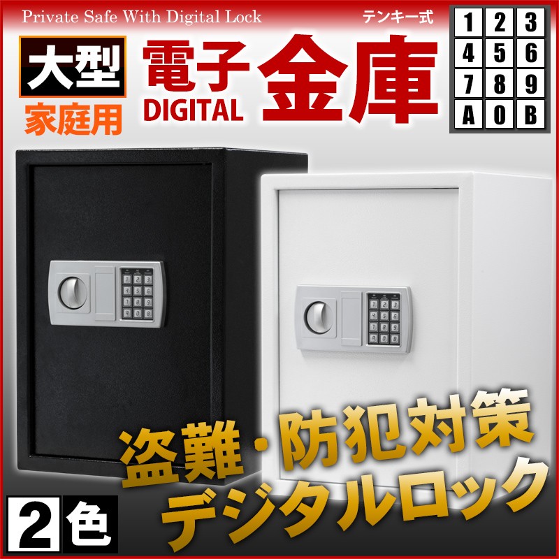 デジタル金庫 テンキー式 大 金庫 電子金庫 電子ロック 家庭用 防犯 黒 白