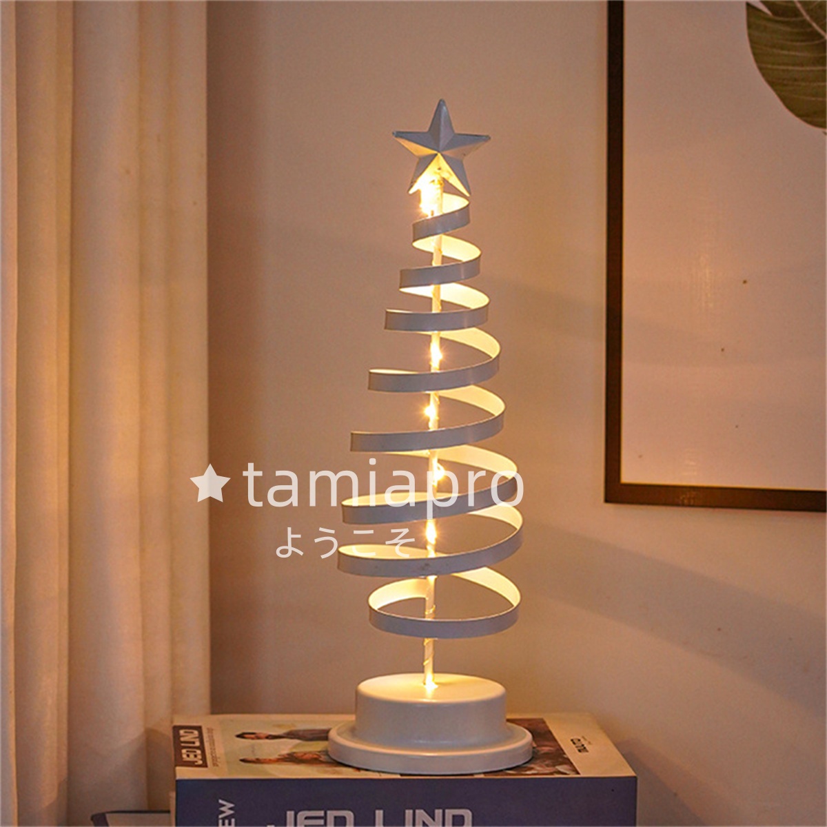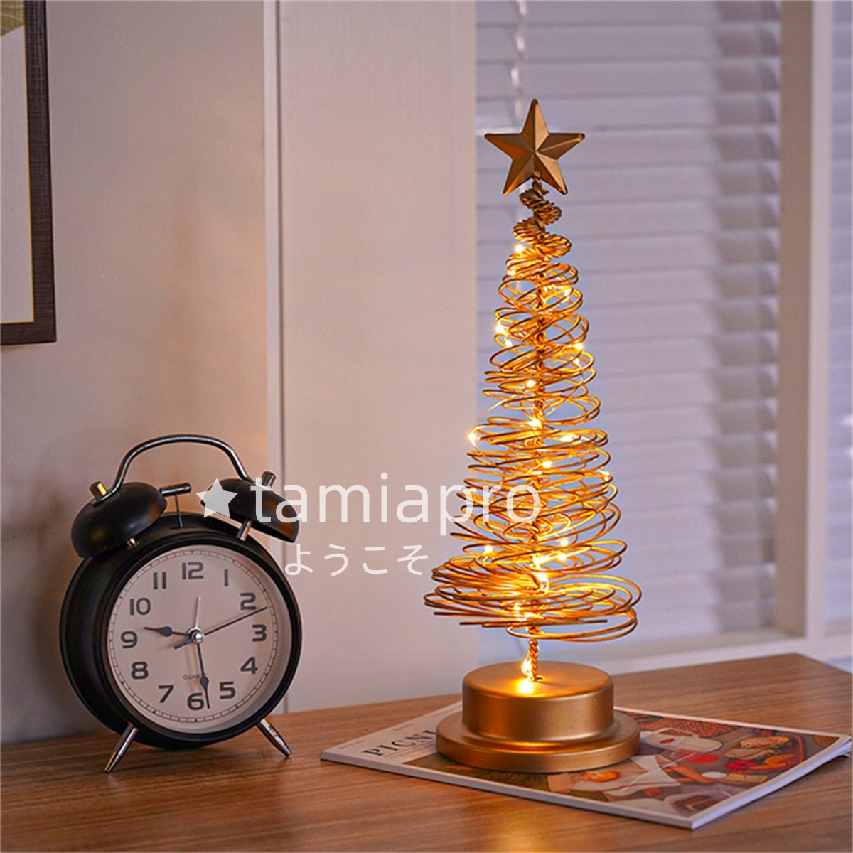 置く場所を選ばないミニツリー。クリスマスツリーライトは、キラキラと輝く、クリスマス雰囲気を演出して、活気が溢れています。