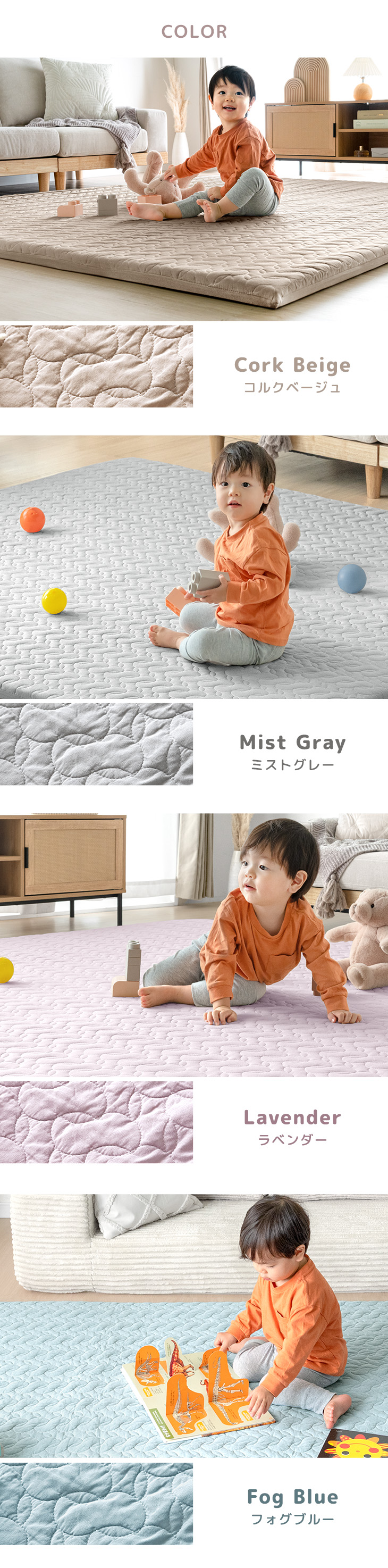 コルクベージュ、ミストグレー、ラベンダー、フォグブルー