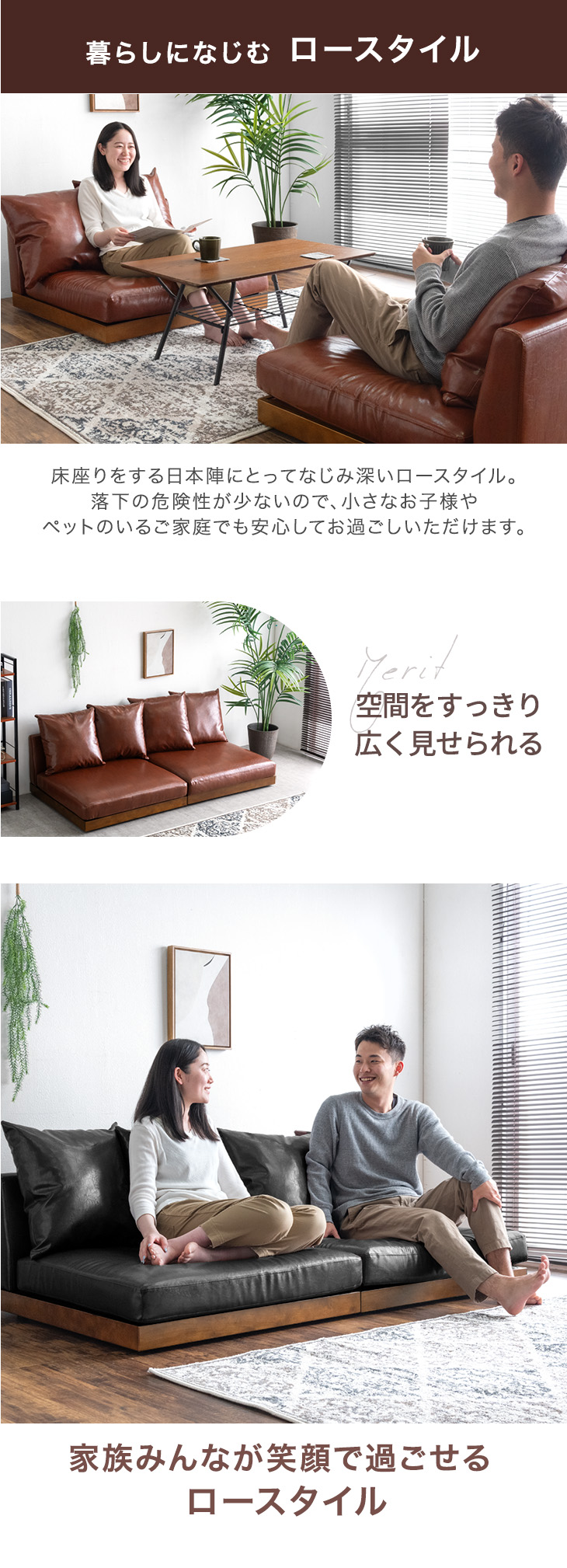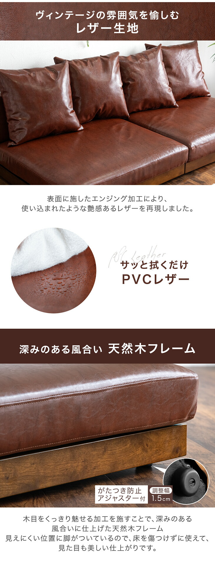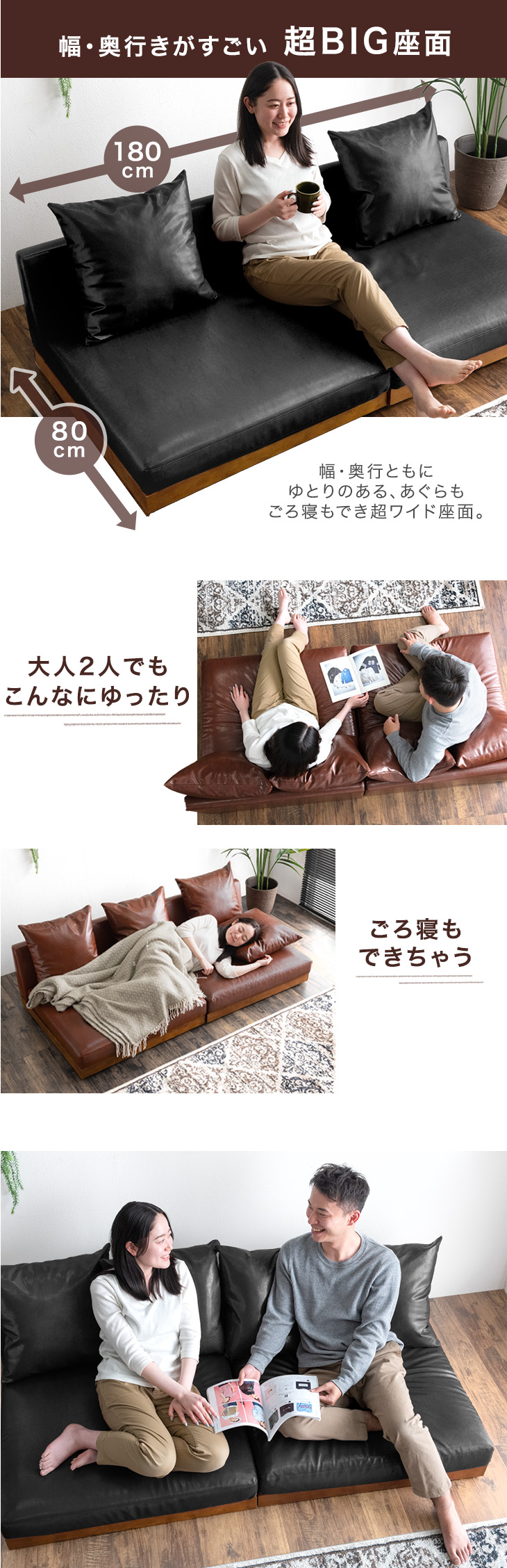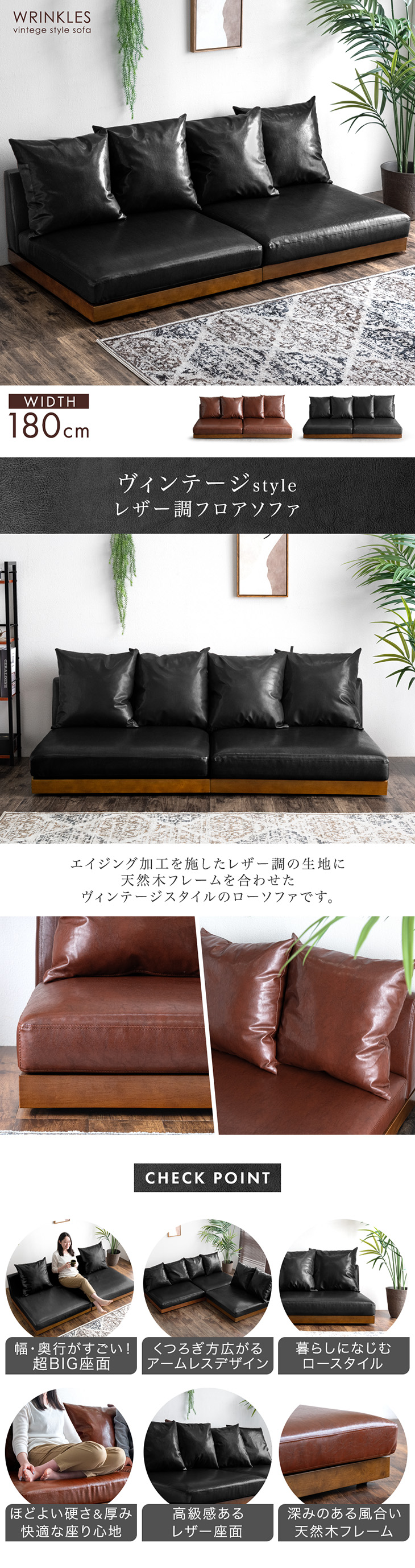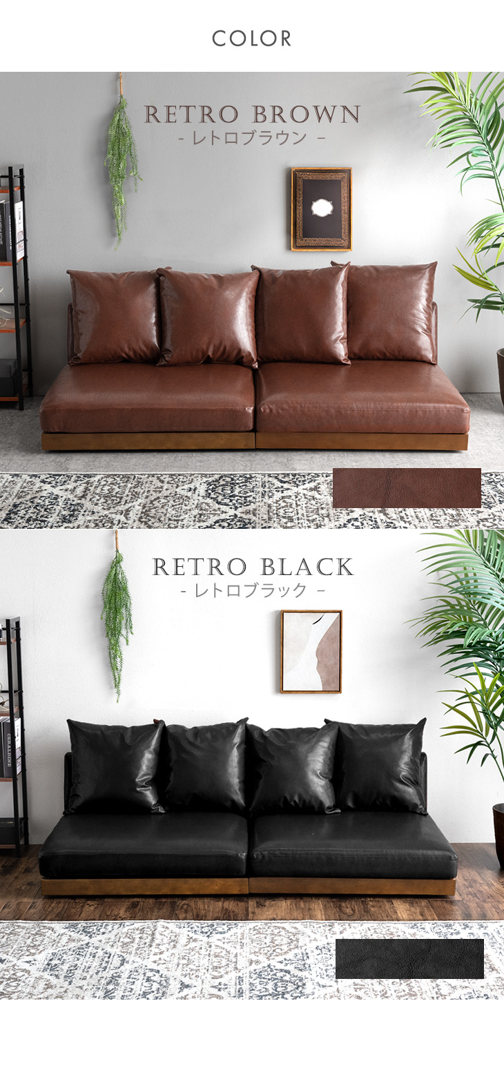 ソファ 3人掛け レザー調 フロアソファ 幅180cm 木製 ローソファ おしゃれ 北欧 3人 ウッドフレーム レザー ロー sofa ソファー