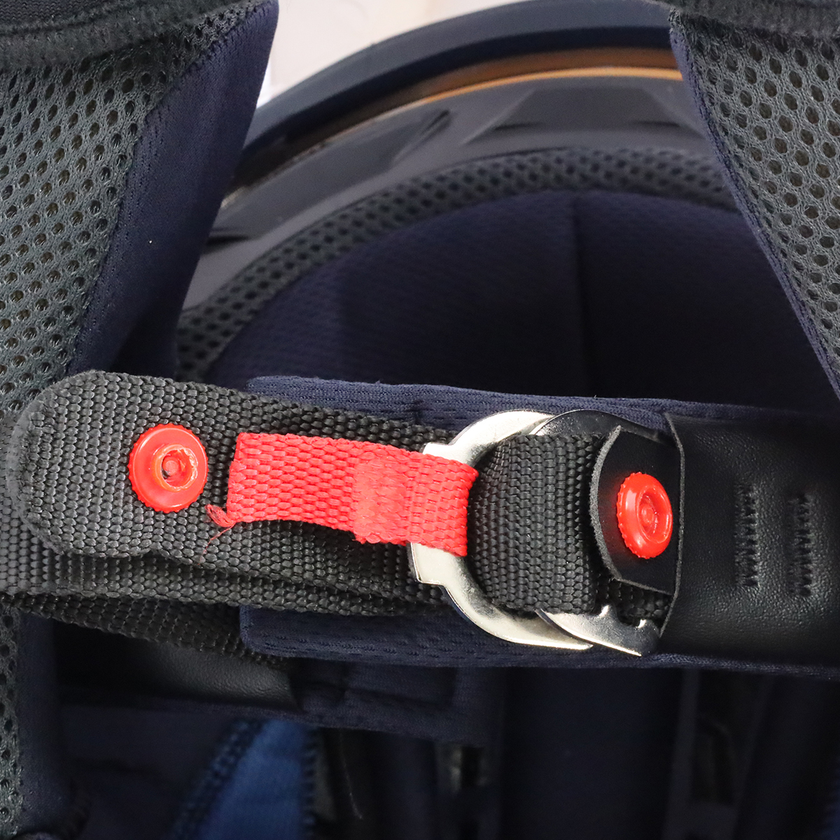 1.あごひもは必ずしっかり締めてください。 万一の転倒時にヘルメットが外れてしまい役立ちません。