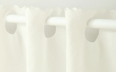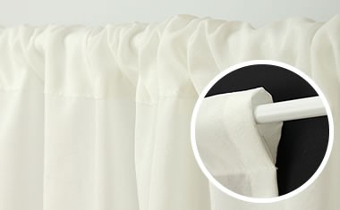 ◆この商品は、上部の穴の中にポール・突っ張り棒(別売)を通して取り付ける「カフェカーテン」です(フックがついたカーテンではありません)