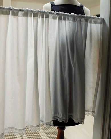 大好評のふわふわ「ピクシー」のカフェカーテン。