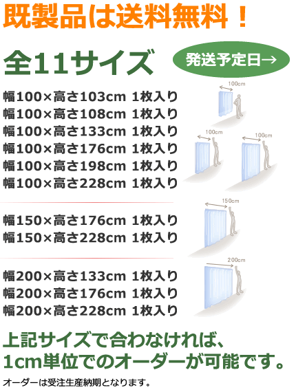1.5倍ヒダ:巾201cm両開き/巾101cm片開き