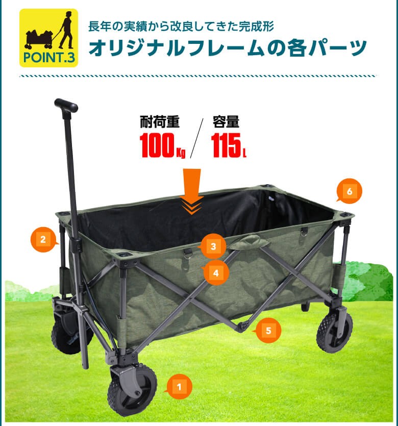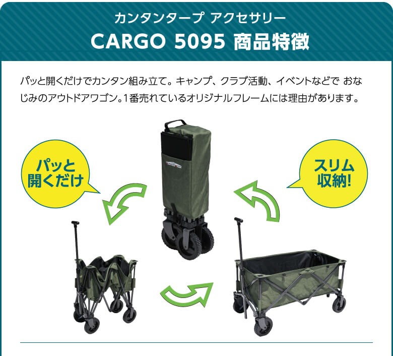 25年の実績 カンタンタープCARGO5095 キャリーワゴン 折りたたみ アウトドアワゴン 簡単 収納コンパクト 大容量 キャンプ 防災 ピクニック 公園 国内ブランド