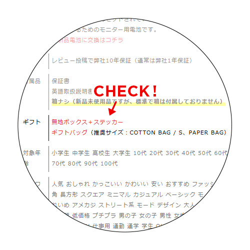 「箱ナシ」と記載の商品は、「無地ボックス+ステッカー」でのラッピング対応となります。