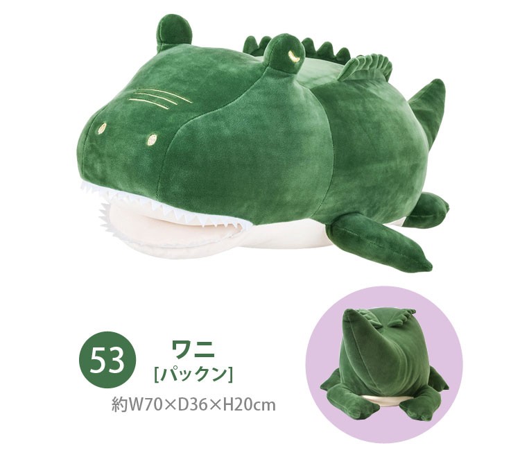 しっとり&もちもちのプレミアムな柔らかさととろけるような触り心地が大人気のプレミアムねむねむアニマルズシリーズ。抱きがいのある大きめのサイズ感が◎くたっと力の抜けたシルエットと表情を見ているだけで日々の疲れを緩和してくれそうです♪かむかむズは口の中に手や足、頭!?を突っ込めちゃう!インスタ映えの写真をとったり、手を突っ込んで枕にしたり、使い方いろいろ♪ご自分にはもちろん、ご家族やお友達へのプレゼントにもオススメです。キャラクター名