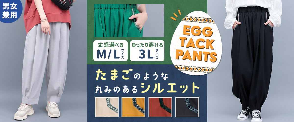 エッグタックパンツ / バルーンパンツ テーパードパンツ レディース メンズ ユニセックス 春 夏 丈選べる M L 3L 無地 ウエストゴム コクーン サルエル
