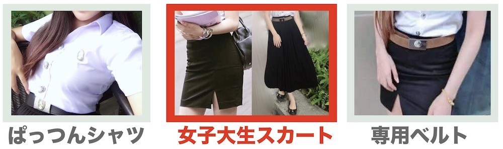 この商品ページは女子大生スカートの販売ページです。その他のぱっつんシャツと専用ベルトをコンプリートする事により完璧なタイの女子大学生スタイルが完成します。2000円以上のお買い物で送料無料です!