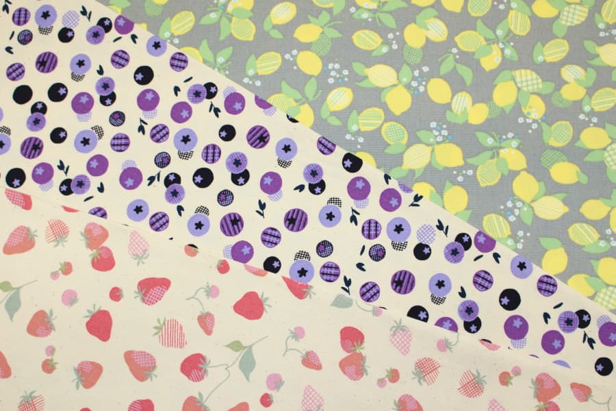 今回のテーマは果物。さわやかでモダンなレモン柄・ラブリーなブルーベリー柄・フェミニンないちご柄をご用意しました。