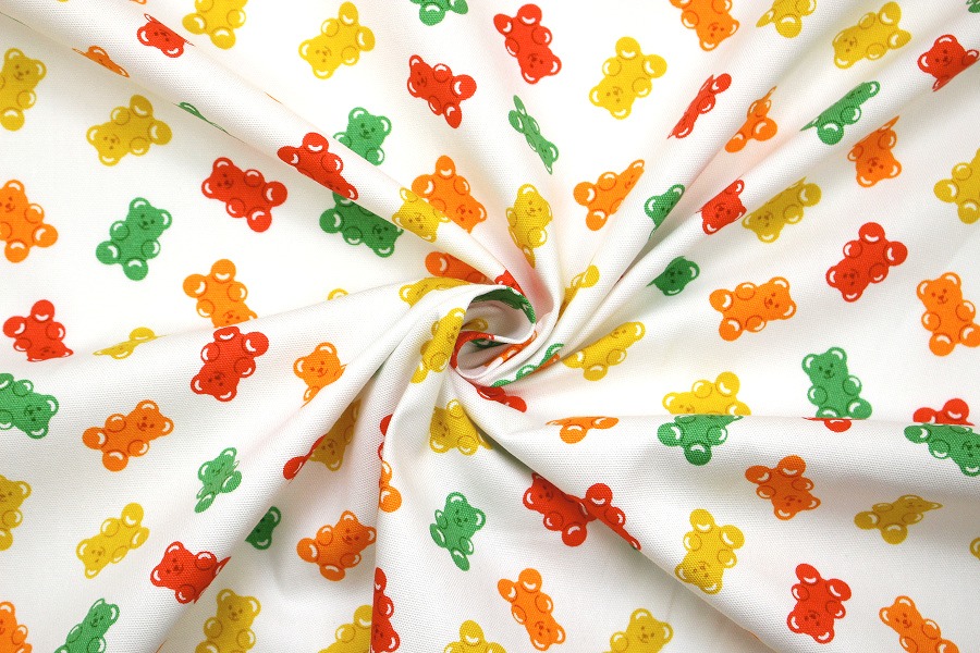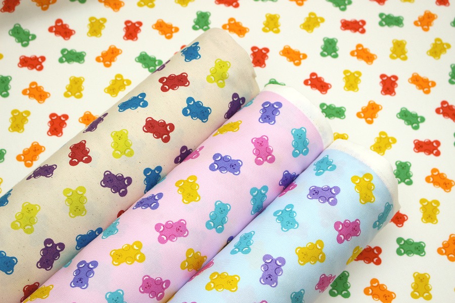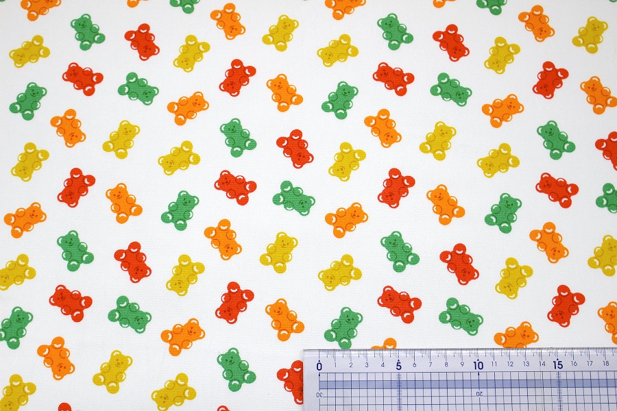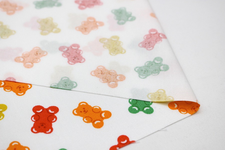 生地 布 くまさんグミ カラフル グミ お菓子 ベアー クマ 韓国 動物 スイーツ オックス 綿100% 約110cm幅 ゆうパケット2m対応 10cm単位価格