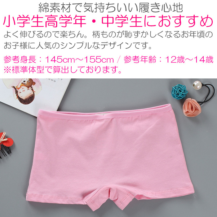 小学生高学年〜中学生向け女の子用ボクサーパンツです。