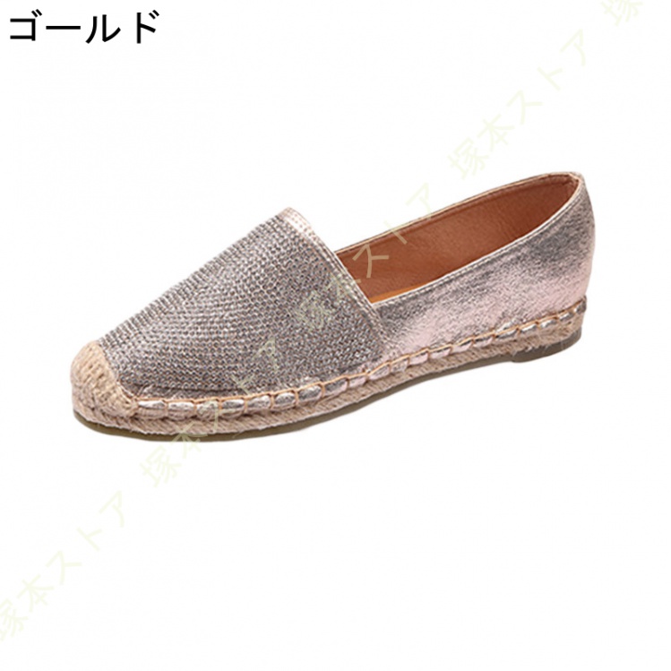 エスパドリーユ スリッポン ゴールド シルバー シューズ 靴 レディース フラット スリッポン サンダル スニーカー レディース ぺたんこ おしゃれ ジュート巻き
