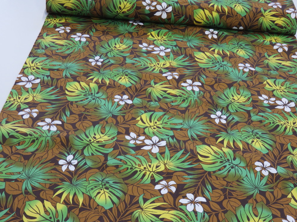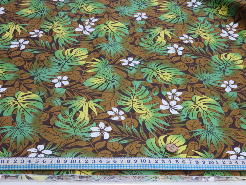 ハワイアン モンステラ ブラウン ブロード生地 フラダンス ムームー アロハ 生地巾108cm 日本製 綿100% コットン 布 薄手 夏生地 ハンドメイド