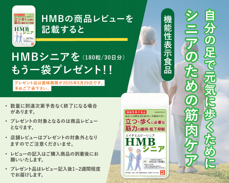 HMBシニア[機能性表示食品]【送料無料】【HMB1,200mg配合/日】【180粒/約30日分】【国産HMBカルシウム】【HMBサプリメント】