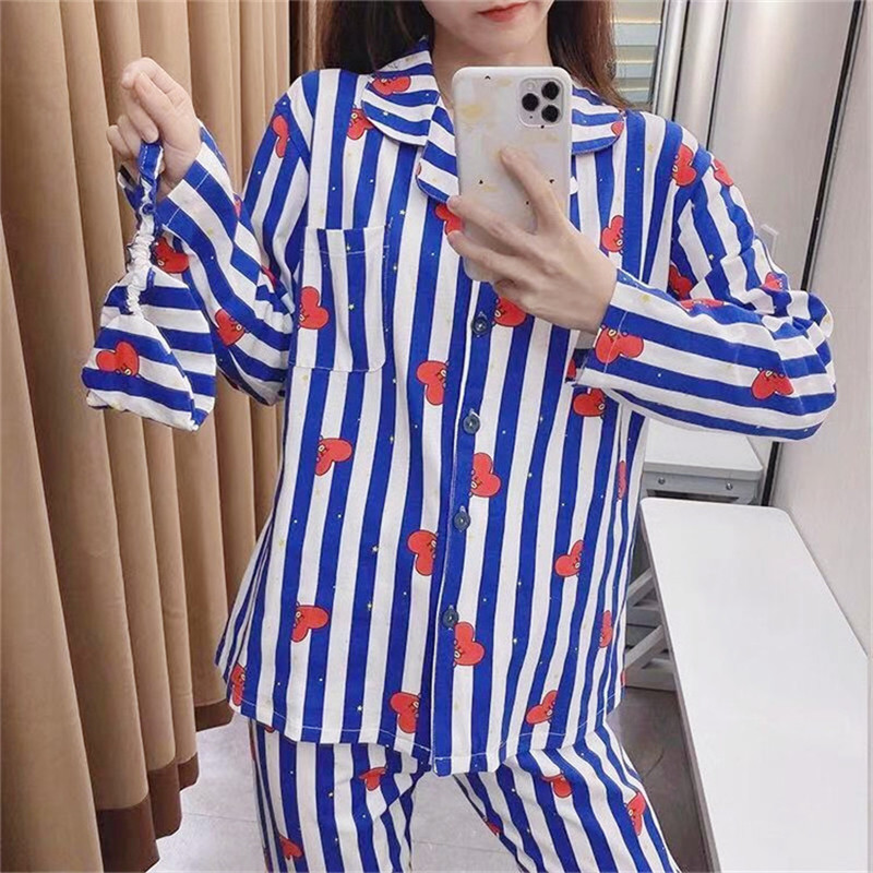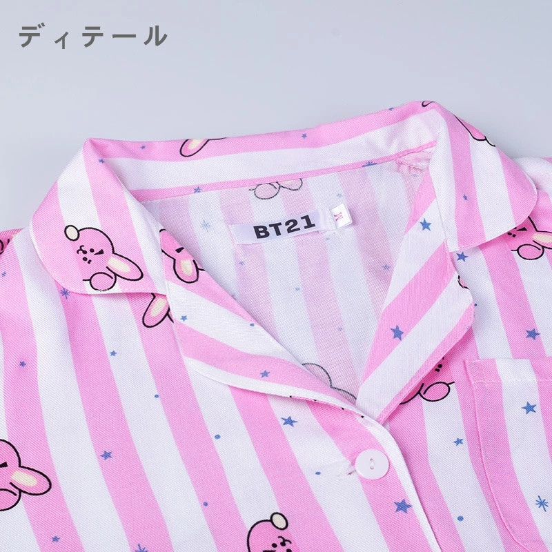 送料無料 BTSグッズ パジャマ ルームウェア 長袖長ズボン 韓国 セットアップ 春秋 ビーティー21 防弾少年団 BT21 ストライプ ビーティエス BT21