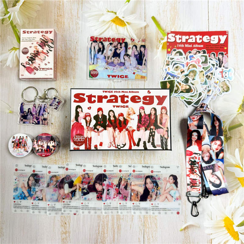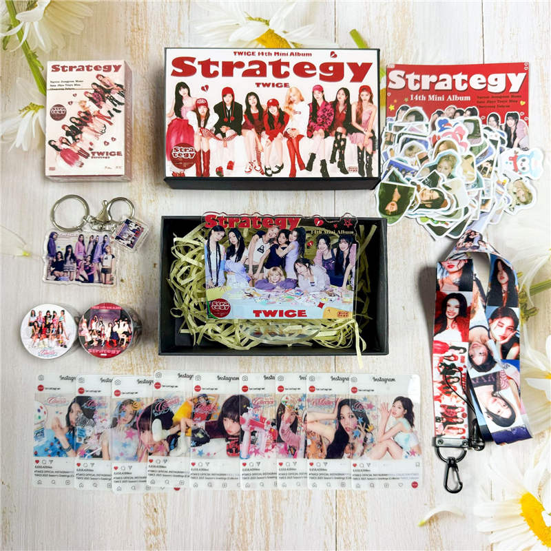 TWICEグッズ ギフトボックス フォトカード トゥワイス テープ セット トレカ STRATEGY 写真 フォトカード K-POP 韓国 キーリング ストラップ シールセット ONCE