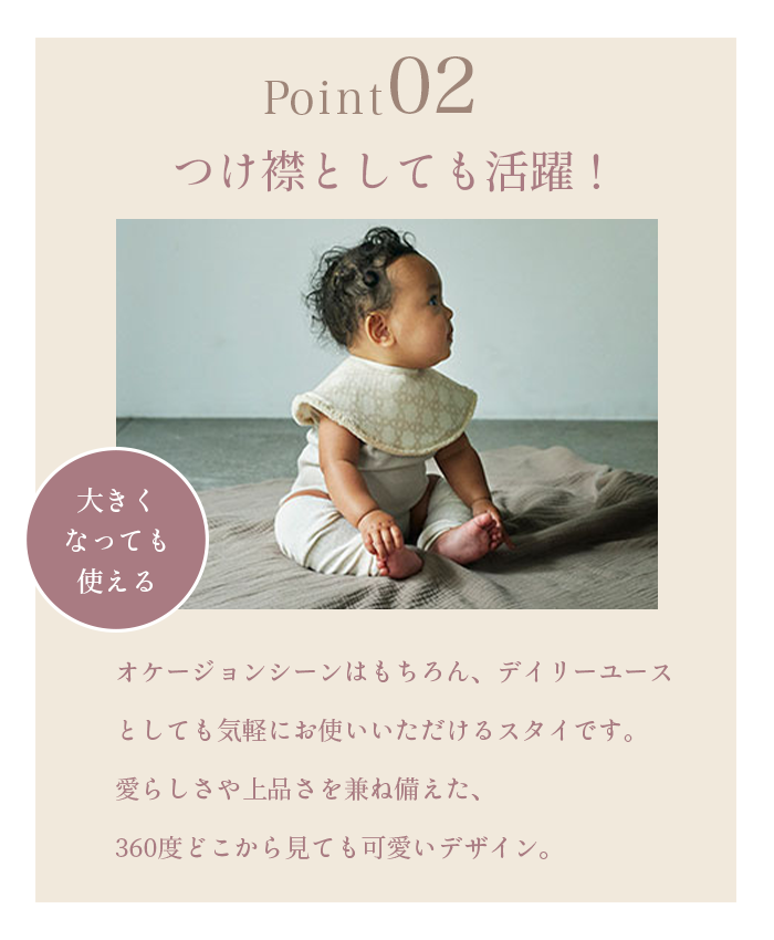 【特徴】子どもたちと地球の未来のために、農業や労働、地球環境に配慮したオーガニックコットン素材を採用。子どもへのギフトに未来への可能性も詰め込みたい方への選択肢として、マールマールはオーガニックコットンをご提案します。軽やかな表地とよだれもしっかりと吸収する裏地でデザインと機能性を両立する1枚です。
