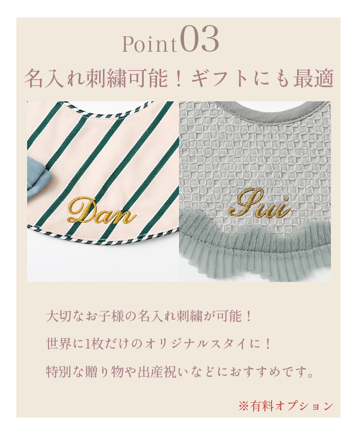 マールマール スタイ オーガニック organic2 MARLMARL ビブ まあるいよだれかけ 名入れ 刺繍