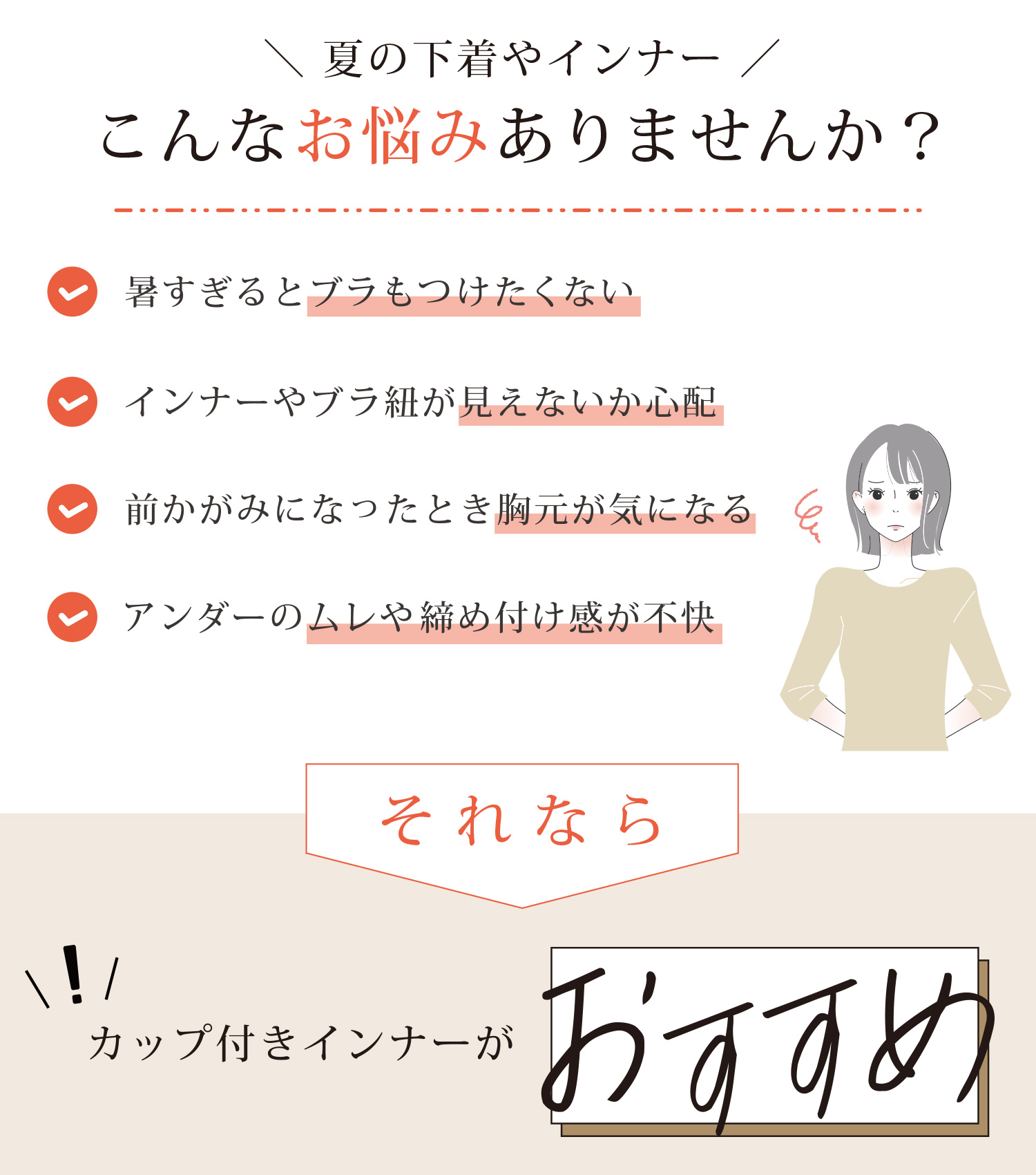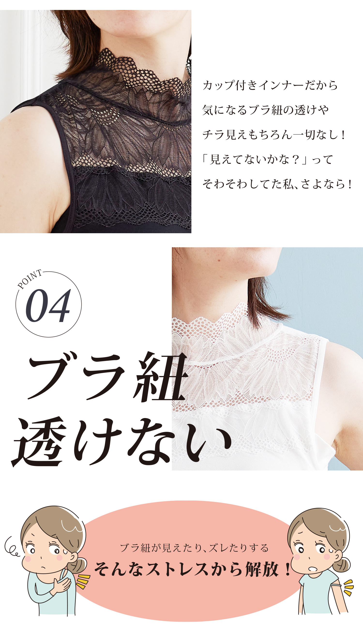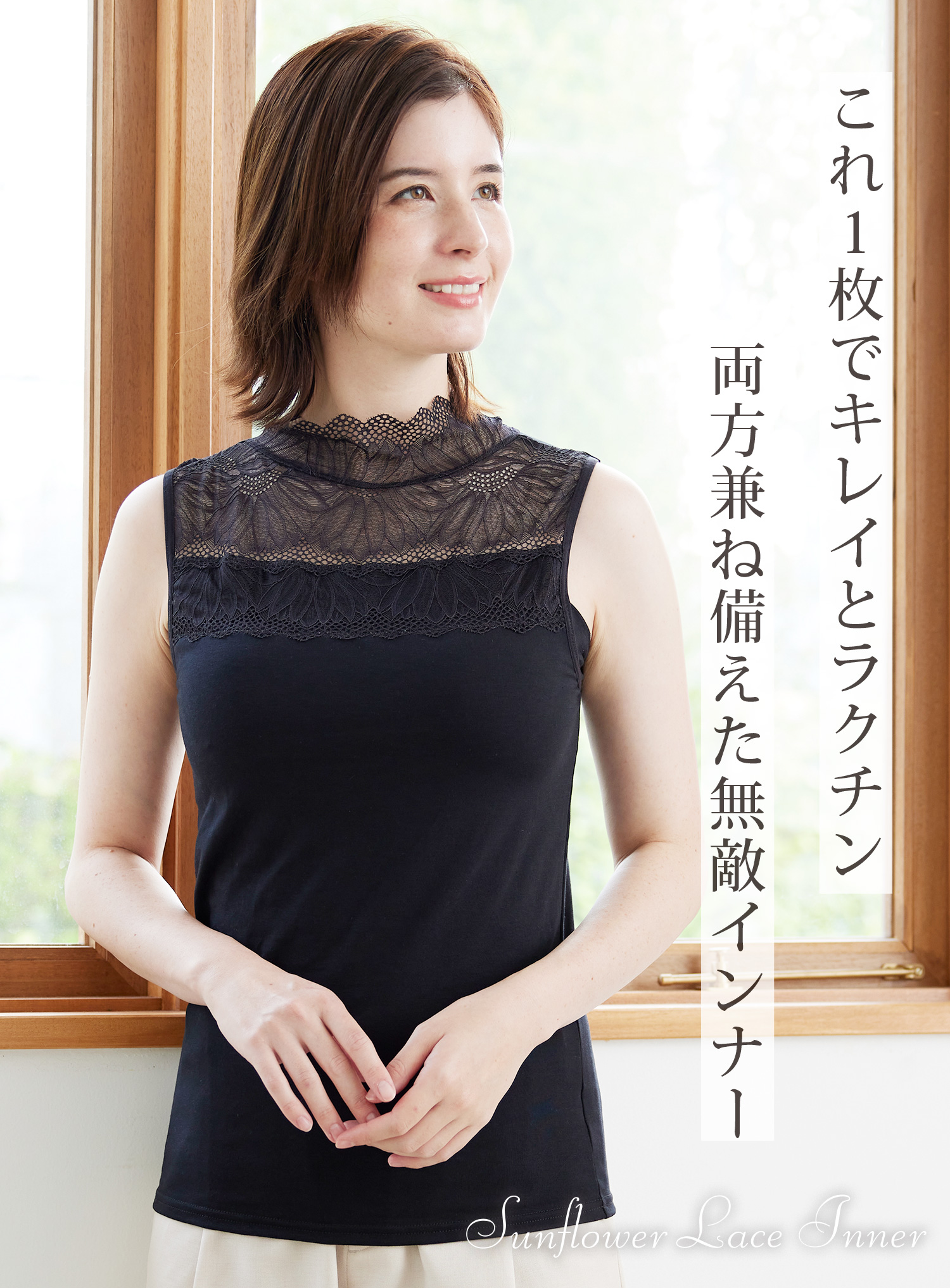 アウターライクにも便利なカップ付きインナーです。