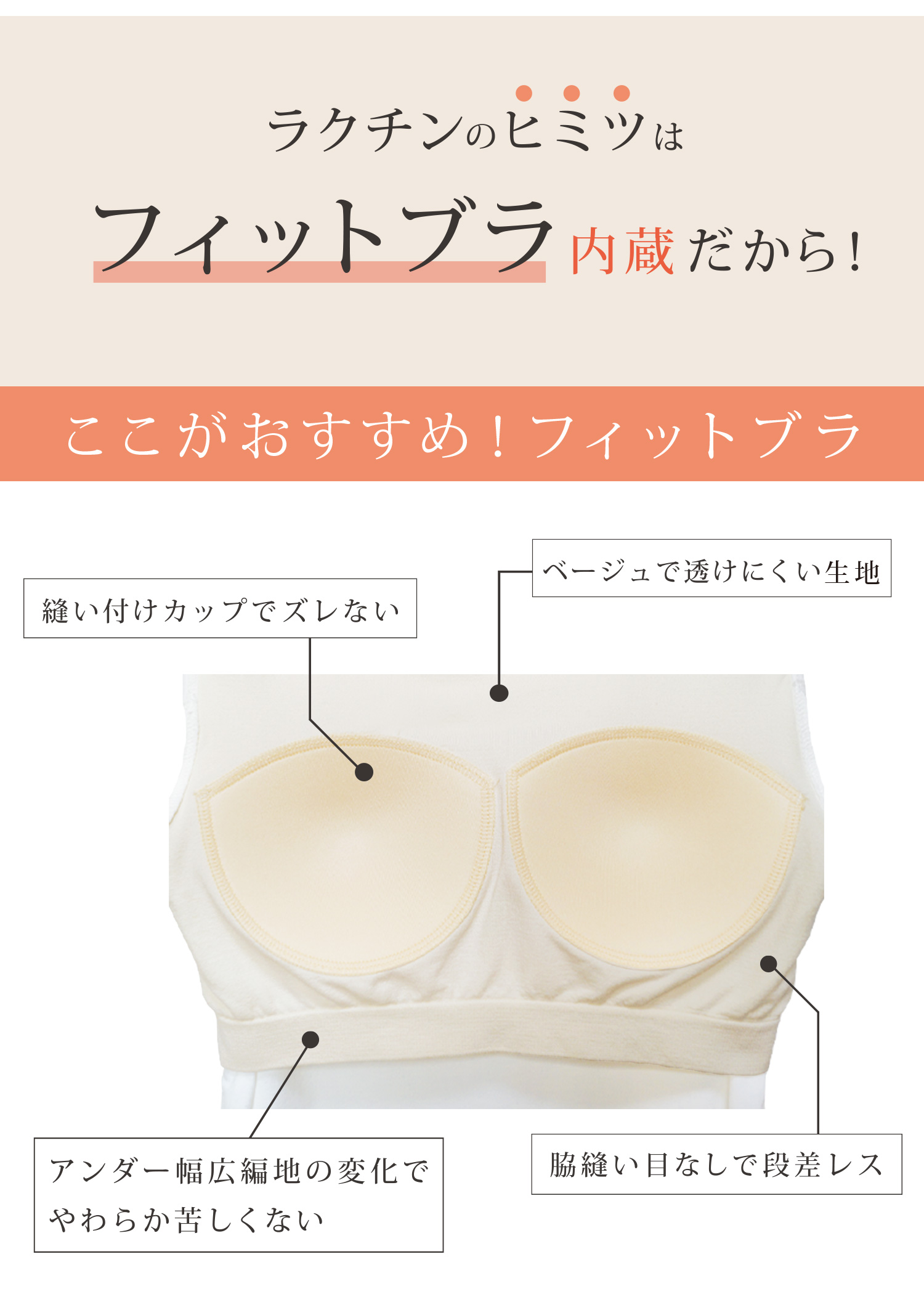 カップは身生地との一体型なので、バストのずれをおさえてシルエットがキレイ。