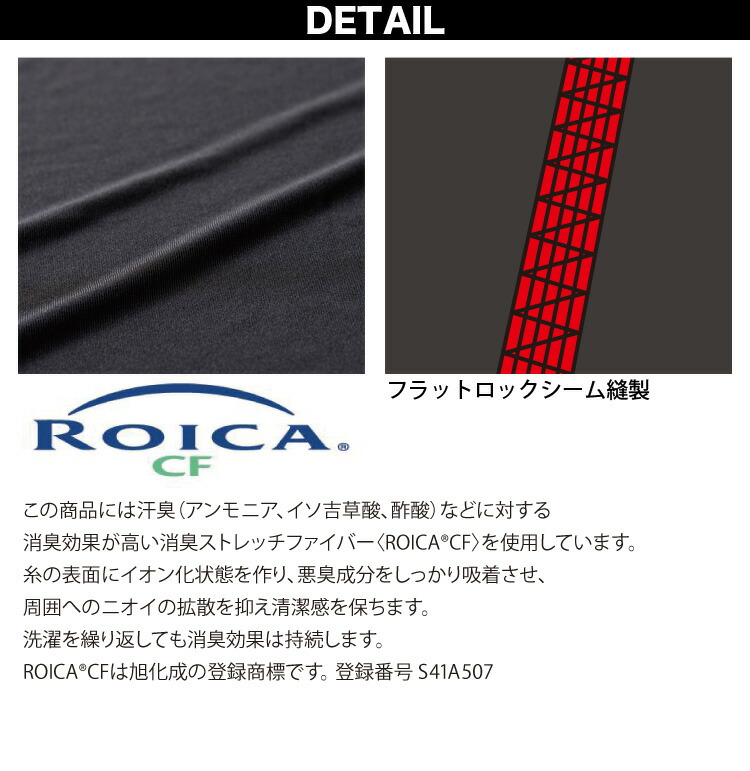 ●消臭効果が持続するロイカ消臭ストレッチファイバーを使用