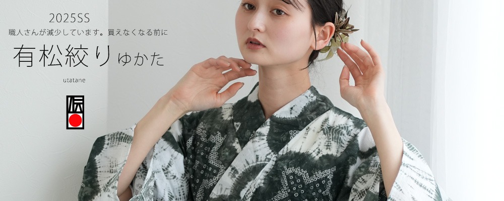 伝統工芸士・清江和雄氏の手によって命を吹き込まれた、utatane別注の特別な浴衣セットです。最高級の「近江縮(おうみちぢみ)」を使用し、京鹿の子絞りと有松染めの技法を贅沢に用いた、まさに一生ものの逸品に仕上がりました。